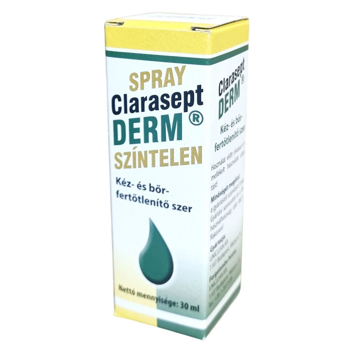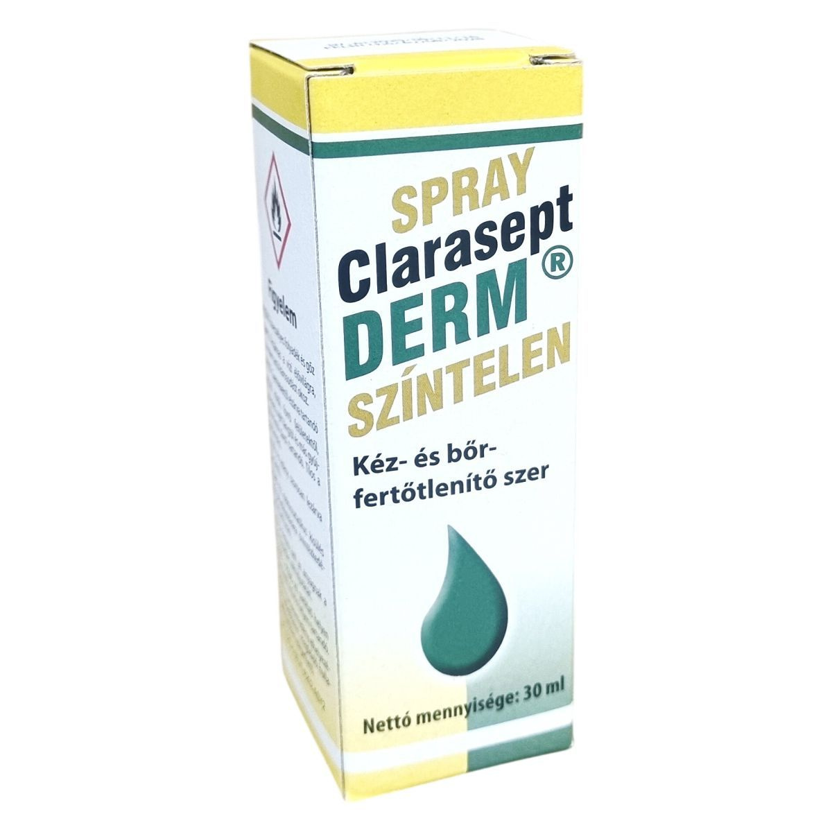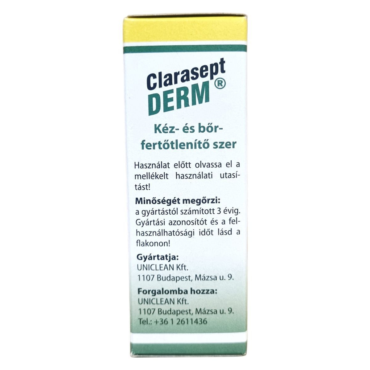 A Clarasept DERM egy 30 ml-es színtelen permet formájú fertőtlenítőszer, mely kifejezetten kéz- és bőrfertőtlenítésre készült. A termék minőségét a gyártástól számított három évig megőrzi. A gyártási azonosítót és a felhasználhatósági időt a flakonon található felirat mutatja. A készítmény tűzveszélyes, ezért annak tárolása és használata során a megfelelő óvintézkedéseket be kell tartani, különös tekintettel a hőtől, szikrától és nyílt lángtól való távolságtartásra. Környezetre ártalmas, ezért kerülni kell az anyag környezetbe kerülését. Használat után a flakon megfelelő hulladékégetőben semmisíthető meg.