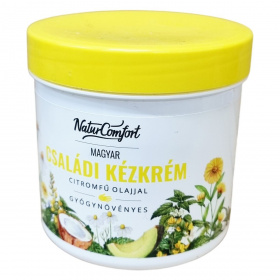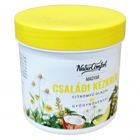 Ez a családi kézkrém különféle természetes és bőrápoló hatóanyagokat tartalmaz, például avokádóolajat, citromfű olajat, kókuszolajat, shea vajat, kékkamilla olajat és karnauba viaszt, amelyek együtt ápolják és védik a bőrt. A krém használata ajánlott naponta többször, különösen kézmosás vagy különféle munkafolyamatok, mint olajos, mosószeres vagy földes munkák előtt. A termék 250 ml-es kiszerelésű, gyártási azonosítóval ellátott, az összetevők listája a dobozon megtalálható. A krém Európai Unióban készült, a felelős forgalmazó a NaturComfort Kft., székhelye Nyíregyházán található.