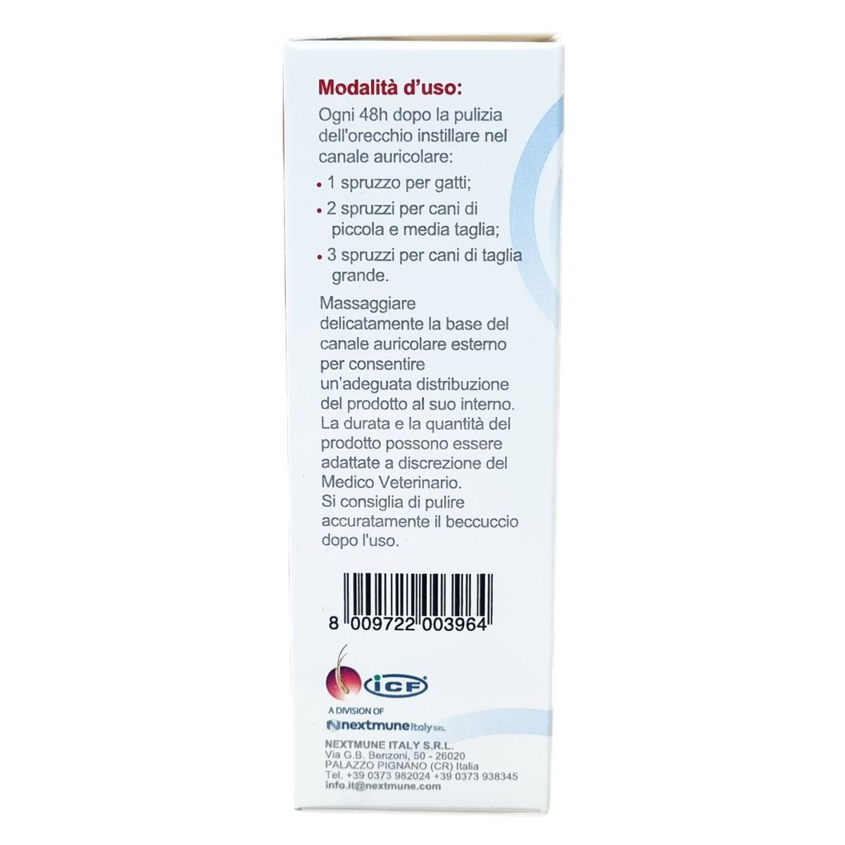 A fül előzetes megtisztítása után pumpáljon be a hallójáratba 48 óránként a következő adagokat: macskák esetén 1 pumpálás, kis- és közepes testű kutyáknál 2 pumpálás, nagytestű kutyáknál 3 pumpálás. Az adagolás után gyengéden masszírozza meg a fül tövét az egyenletes eloszlásért. Az állatorvos ettől eltérő adagolást is előírhat.