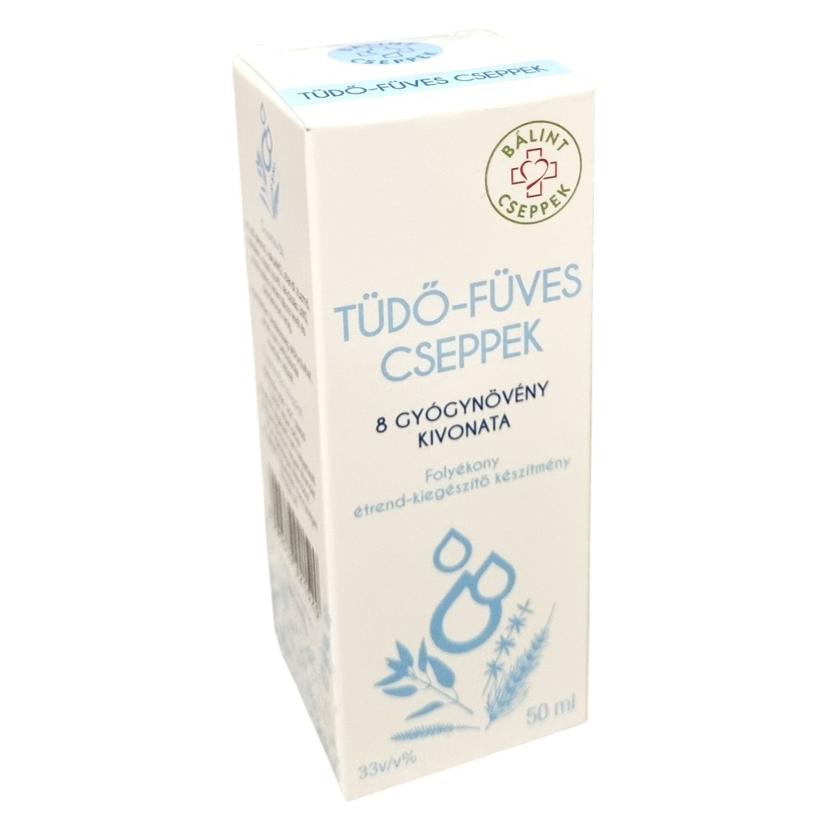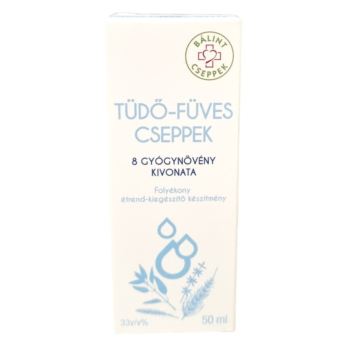 A Bálint Cseppek Tüdő-Füves cseppek egy folyékony, nyolcféle gyógynövény kivonatát tartalmazó étrend-kiegészítő. A termék etil-alkohol alapú kivonatokból készült, melyek hatóanyag koncentrációja a napi ajánlott adag 21 cseppjében van feltüntetve. A készítményben előfordulhat üledékesség, ami a termék hatását nem befolyásolja. Nettó térfogata 50 ml. Származási helye Magyarország. A termék a hungarikumok közé tartozó gyógynövényeket felhasználva készült, melyek hagyományosan alkalmazott összetevők. A termék csomagolásán megtalálható a vonalkód és egyéb azonosító adatok is.