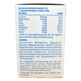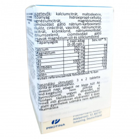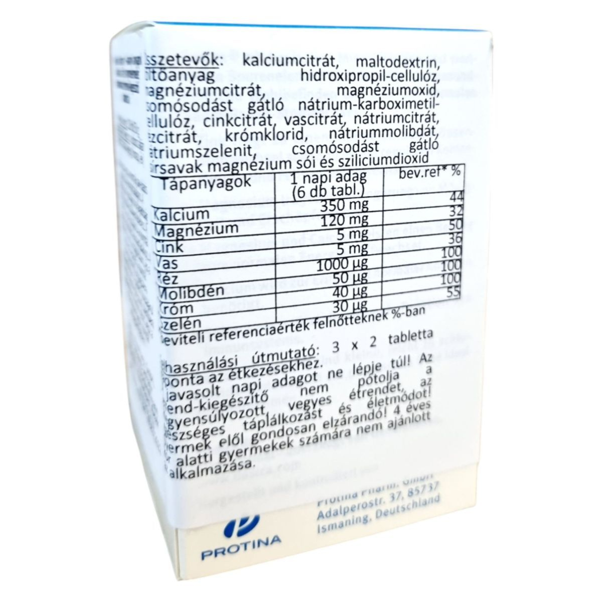 kalciumcitrát, maltodextrin, töltőanyag hidroxi-propil-cellulóz, magnéziumcitrát, magnéziumoxid, csomósodást gátló nátrium-karboximetil-cellulóz, cinkcitrát, vascitrát, nátriumcitrát, rézcitrát, krómklorid, nátriummolibdát, nátriumszelenit, csomósodást gátló zsírsavak magnezium sói és sziliciumdioxid