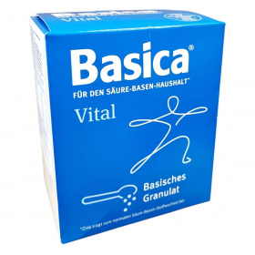 A Basica Vital étrend-kiegészítő granulátum bázikus ásványi anyagokat és nyomelemeket tartalmaz, amelyek hozzájárulhatnak a normál sav-bázis egyensúly fenntartásához. A termék cinket, magnéziumot és szelént tartalmaz, amelyek támogathatják az immunrendszer normál működését. A granulátum íztelen, és hideg vagy meleg ételekbe keverhető. A termék laktózt tartalmaz, és nem ajánlott 4 éves kor alatti gyermekek számára. A Basica Vital granulátumot a Protina Pharm. GmbH gyártja Németországban, és a Dr. Kocsis & Hoffmann Pharma Kft. forgalmazza Magyarországon.