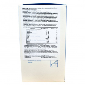 A Basica Vital étrend-kiegészítő granulátum bázikus ásványi anyagokat és nyomelemeket tartalmaz, amelyek hozzájárulhatnak a normál sav-bázis egyensúly fenntartásához. A termék cinket, magnéziumot és szelént tartalmaz, amelyek támogathatják az immunrendszer normál működését.