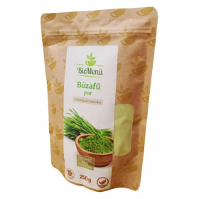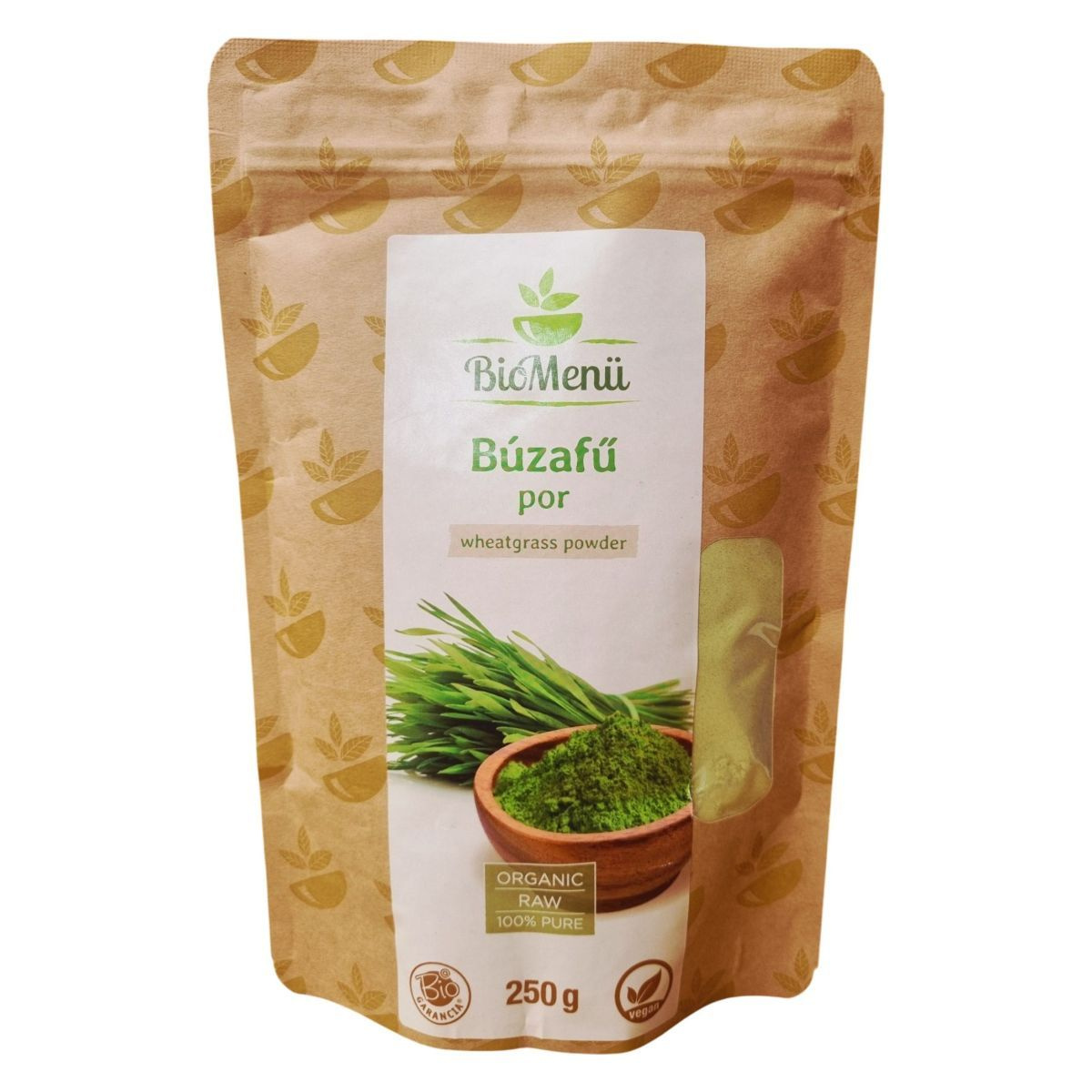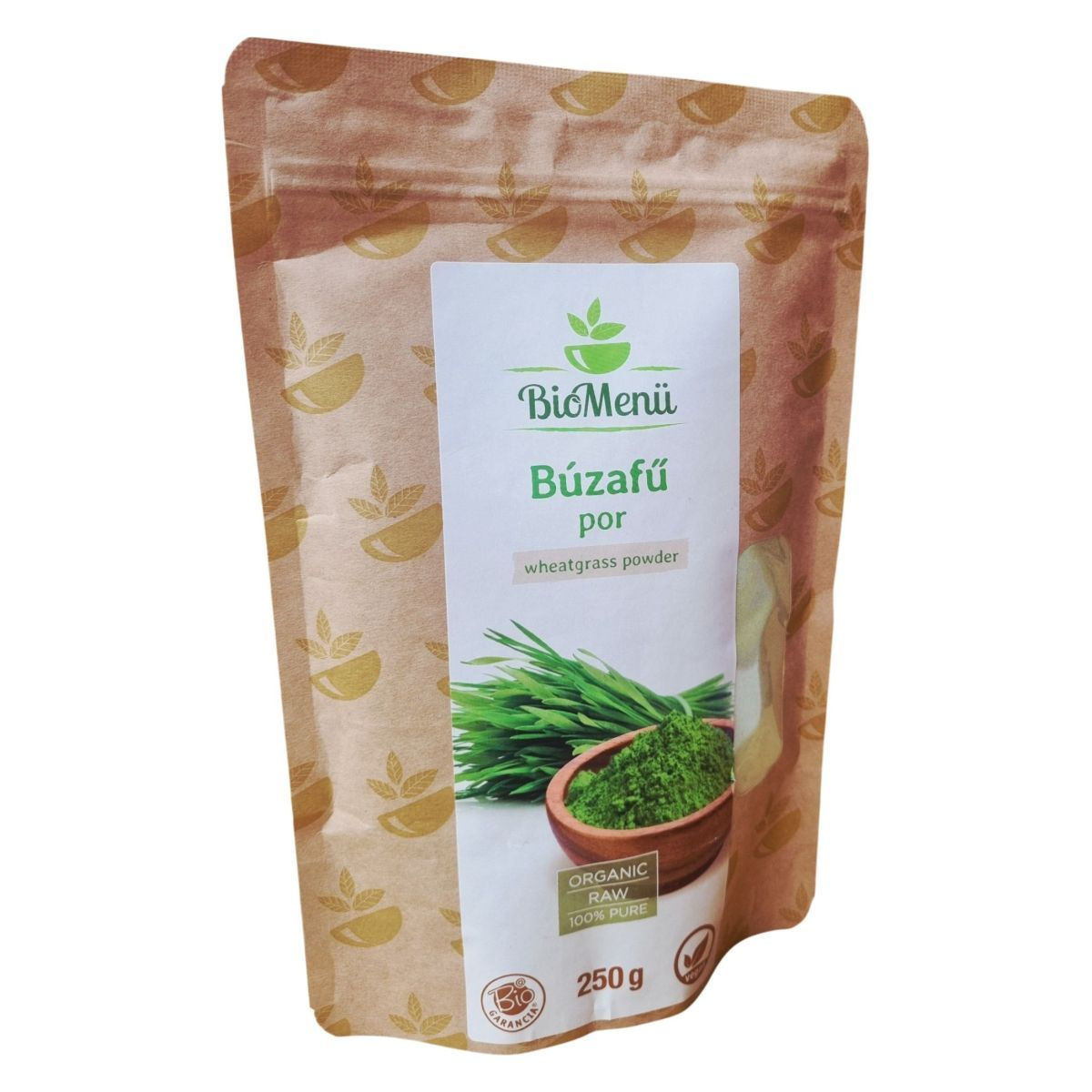 A BioMenü BIO BÚZAFŰ por egy 100% tiszta, organikus termék, amelyet az Európai Unióban állítanak elő. A termék gazdag rostokban és fehérjében, így hozzájárulhat az emésztés támogatásához és a szervezet fehérjeigényének kielégítéséhez. A búzafű por bio, raw és vegán, így különböző étrendi irányzatokhoz is illeszkedhet. A termék nyomokban zellert, mustármagot, vadrepce t és glutént tartalmaz, ezért allergiásoknak érdemes figyelniük. A termék táplálkozási tulajdonságai változhatnak a környezeti feltételektől függően, illetve az idő múlásával. A termék forgalmazója a Caleido IT-Outsource Kft., és rendelkezik HU-ÖKO-02 tanúsítvánnyal.
