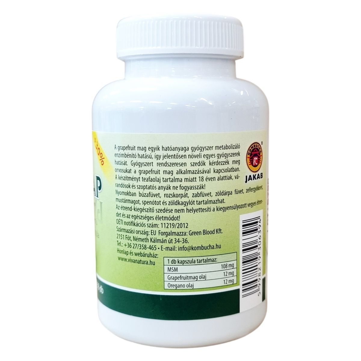 Ez a készítmény hozzájárulhat az emésztőrendszer egészséges működéséhez és a bélflóra egyensúlyához, grapefruitmag-, oregano- és teafaolaj, valamint MSM tartalmának köszönhetően.
