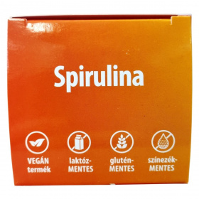 Spirulina algát tartalmazó étrend-kiegészítő tabletta természetes A-vitaminnal, az immunrendszer működéséért, és a normál látás fenntartásáért.