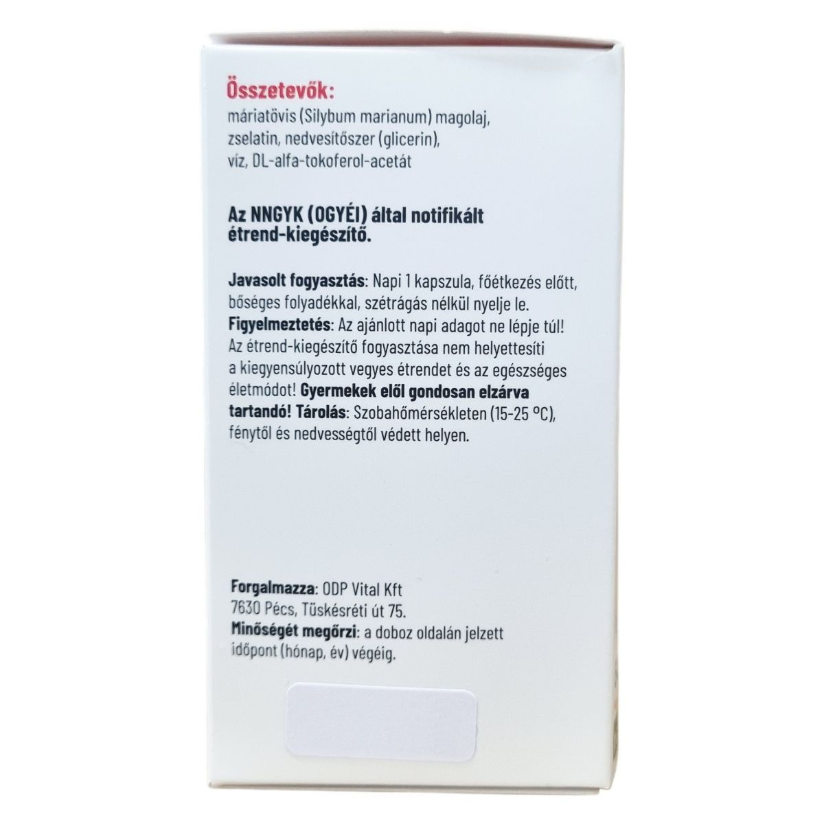 máriatövis (Silybum marianum) magolaj, zselatin, nedvesítőszer (glicerin), víz, DL-alfa-tokoferol-acetát