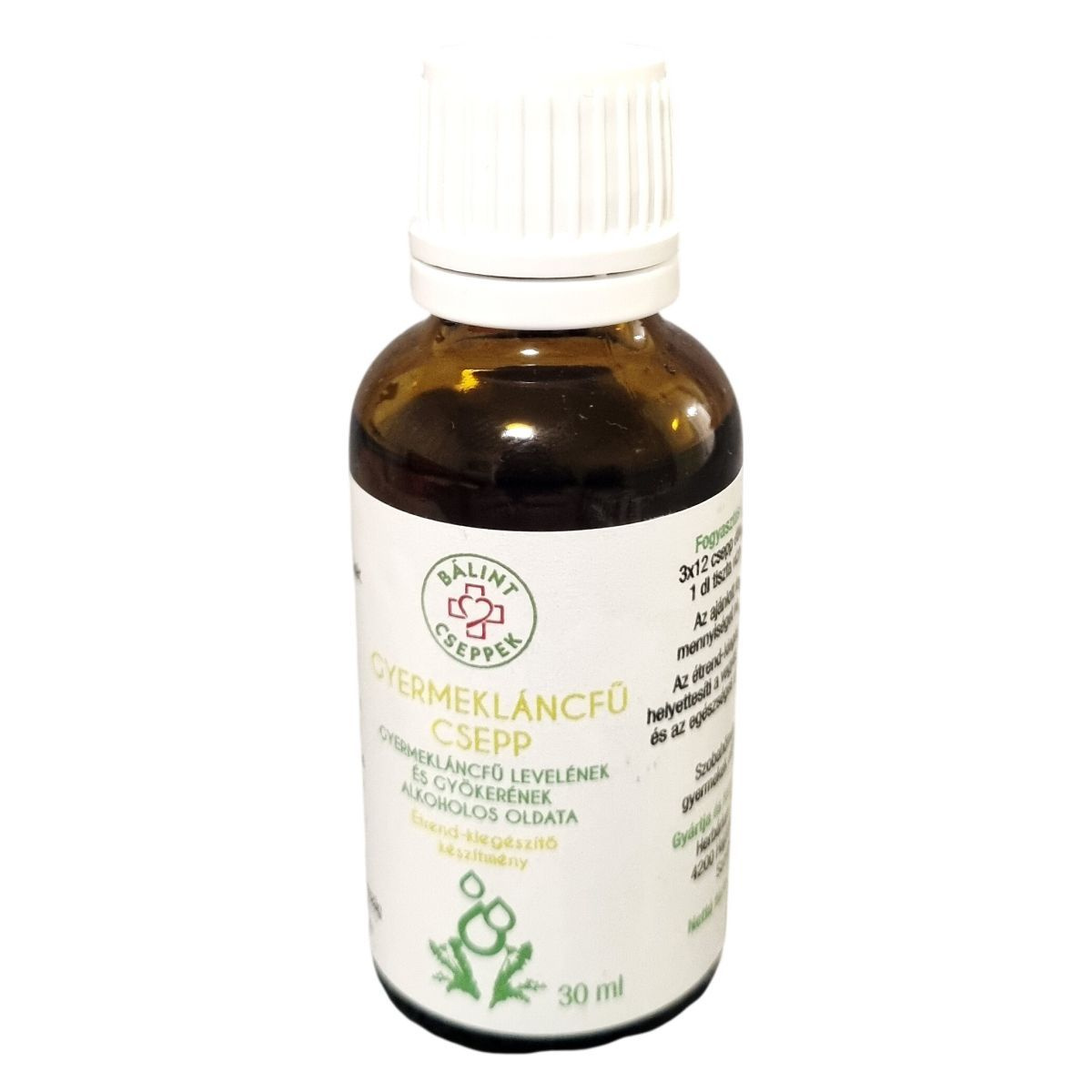 A Bálint Cseppek Gyermekláncfű csepp készítményben a gyermekláncfű levelének és gyökerének alkoholos oldata található meg, amely 30 ml-es kiszerelésben érhető el. A termék natúr hordozóként vizet és alkoholt tartalmaz, így a hatóanyagok oldódása biztosított. A termékben természetes üledékesedés előfordulhat, mely nem befolyásolja a minőséget. A napi adagban 36 csepp található, amelyből 54 mg gyermekláncfű gyökér és 54 mg gyermekláncfű levél van jelen. A termék Magyarországon készül. Az ajánlott adagolás a napi háromszori 12 csepp étkezések előtt, vízben feloldva. Fontos, hogy a javasolt mennyiséget ne lépjük túl, és a készítmény nem helyettesíti a változatos étrendet és az egészséges életmódot.