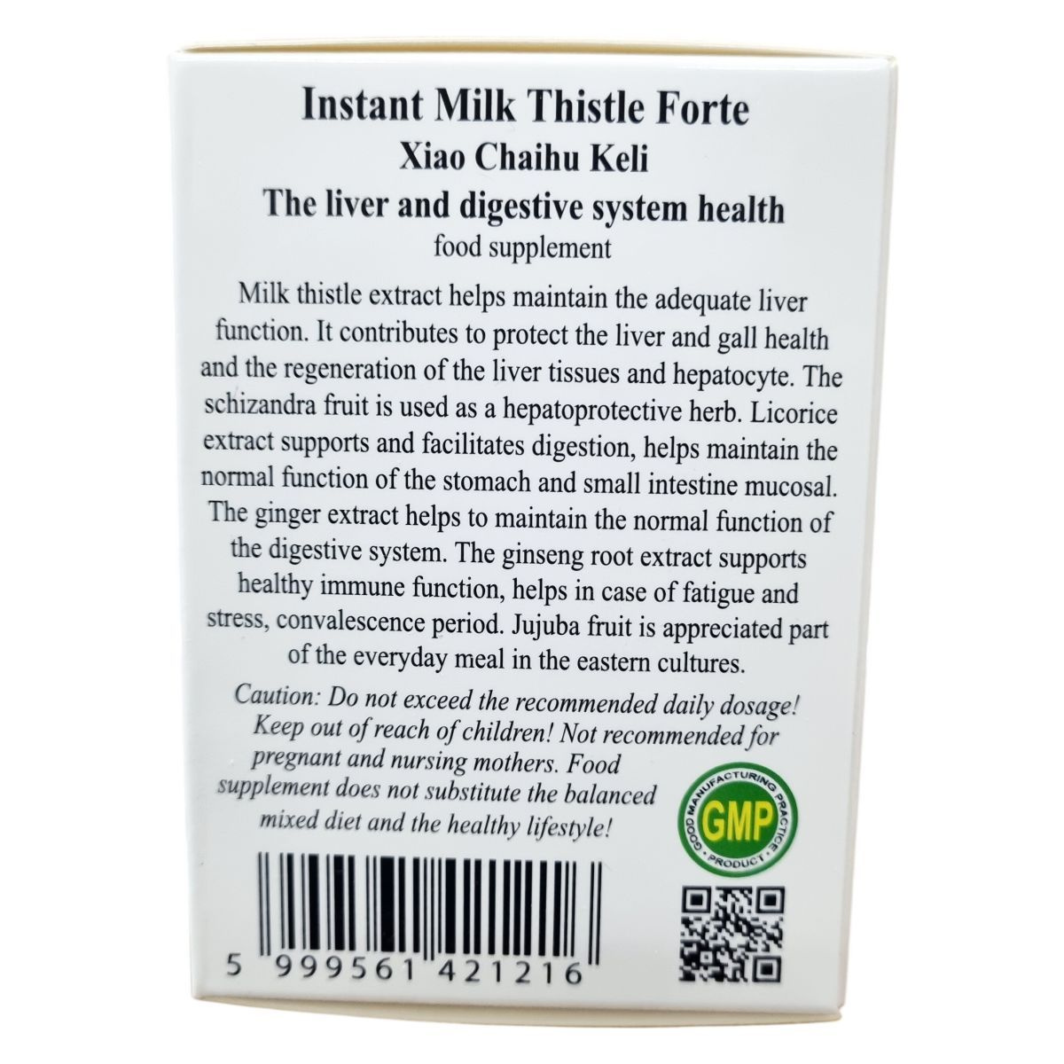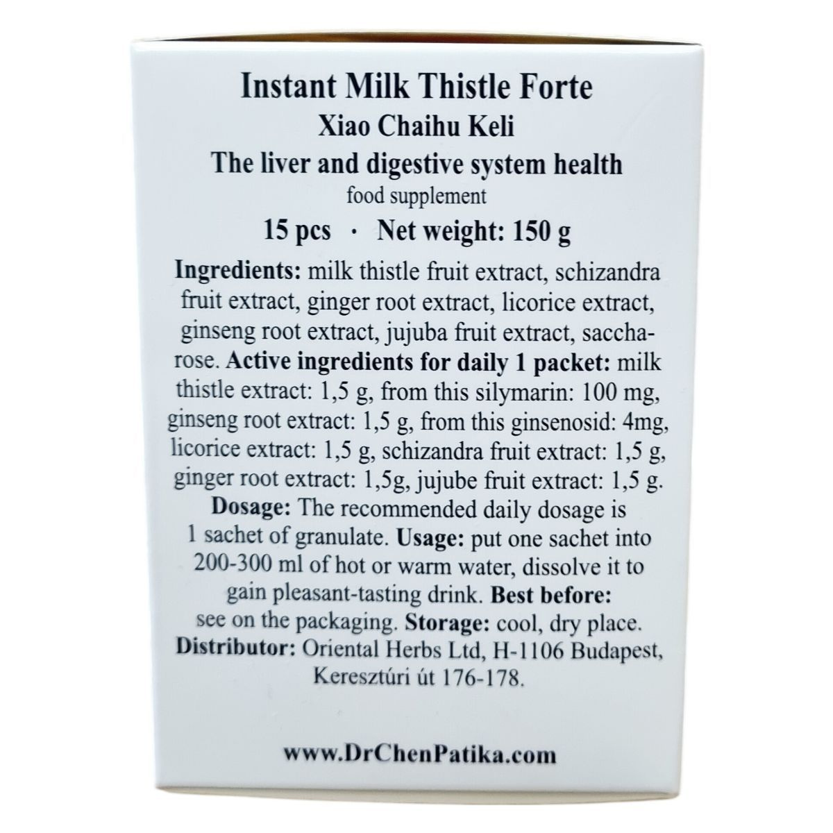 A termék hatóanyagai között szerepel a máriatövis-kivonat, amely segítheti a megfelelő májfunkció fenntartását, hozzájárulhat a máj és az epe egészségének megőrzéséhez, valamint a májsejtek regenerálódásához. A schizandra gyümölcs májvédő gyógynövényként ismert, míg az édesgyökér-kivonat támogathatja az emésztést és segítheti a gyomor és a vékonybél nyálkahártyájának normál működését. A gyömbér-kivonat hozzájárulhat az emésztőrendszer normál működéséhez. A ginseng gyökérkivonat támogathatja az immunrendszer egészséges működését, és segítséget nyújthat fáradtság, stressz vagy lábadozási időszak esetén. A jujuba gyümölcs a keleti kultúrákban értékelt része a mindennapi táplálkozásnak. A készítmény aromazáró csomagolásban érkezik, mely megőrzi az összetevők frissességét, és könnyen elkészíthető, kellemes ízű italként fogyasztható. Nem helyettesíti a kiegyensúlyozott étrendet és az egészséges életmódot.