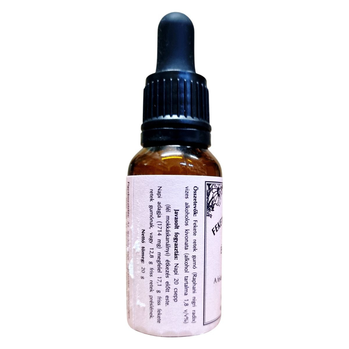 Fekete retek cseppek, amelyek természetes módon támogatják az emésztést és a méregtelenítést.