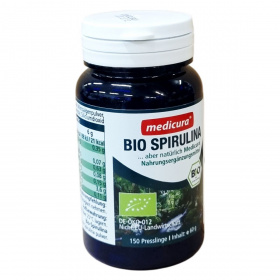 A Medicura Bio Spirulina készítmény spirulina platensis mikroalga porból készül, mely organikus termesztésből származik. Egy tabletta 400 mg spirulina port tartalmaz, és a csomagolás 150 tablettát foglal magában, összesen 60 gramm mennyiségben. Az energia- és tápérték adatok részletesen ismertetik a tápanyagok mennyiségét 100 grammonként és az adagolás szerinti 6 grammra vetítve. A termék alkalmazása felnőttek számára ajánlott, napi háromszori, egyenként öt tabletta bő folyadékkal történő bevételével, előnyösen főétkezések előtt. A tárolás javasolt körülményei között szerepel a hűvös, száraz hely fenntartása, 25 °C alatti hőmérséklettel és fényvédett állapot biztosításával. A termék gyermekektől elzárva tartandó, valamint az ajánlott adagolás túllépése kerülendő. A spirulina alga ismert összetevői között a fehérje és a természetes tápanyagok magas aránya emelendő ki. A csomagoláson feltüntetett engedélyek és tanúsítványok biztosítják a termék bio minőségét és szabályozott előállítását.
