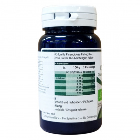 Spirulina, chlorella és zöldárpa gyógynövényeket tartalmazó komplex bio készítmény.