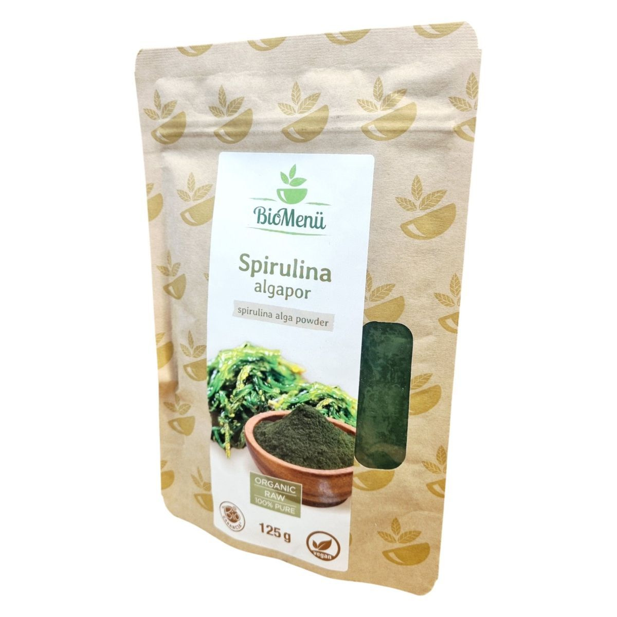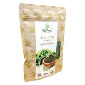 A BioMenü Spirulina algapor egy 100% bio, vegán és raw étrend-kiegészítő, amely spirulina algából készül. A termék Kínából származik, és a spirulina alga gazdag fehérjében és rostban, ami hozzájárulhat a kiegyensúlyozott étrendhez. Az algapor természetes szulfitokat tartalmazhat, ezért allergiások számára fontos az óvatosság. A termék fogyasztása során javasolt a folyadékbevitel növelése. A spirulina algapor táplálkozási tulajdonságai változhatnak a környezeti feltételektől függően, ezért fontos a megfelelő tárolás. A termék HU-ÖKO-02 tanúsítvánnyal rendelkezik, és a Caleido IT-Outsource Kft. forgalmazza.
