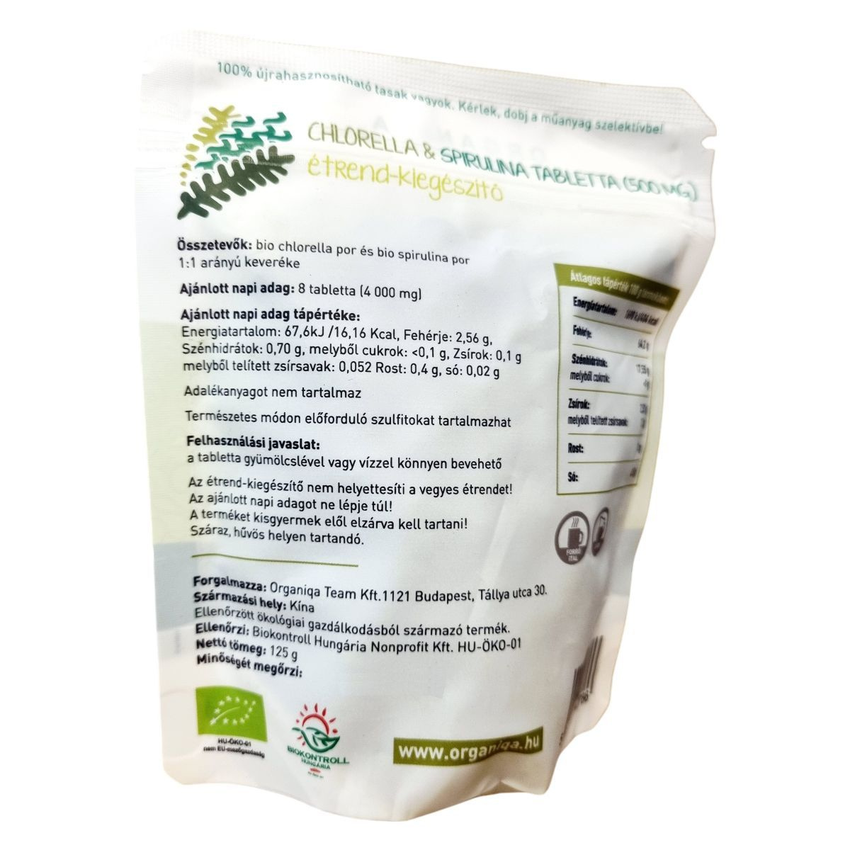 Organiqa Bio Chlorella és Spirulina tabletta 250db leírása