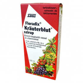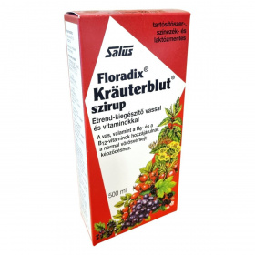 A Floradix Kräuterblut szirup vas(II)-glükonátból származó szerves kötésű vasat, B1, B2, B6 és B12 -vitaminokat tartalmaz,