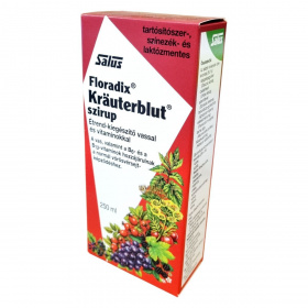 A Salus Floradix Kräuterblut szirup válogatott növényi és gyümölcs-kivonatokon alapuló, vasat és többféle B-vitamint, valamint C-vitamint tartalmazó étrend-kiegészítő, amely segíthet a fáradtság és kimerültség csökkentésében, és hozzájárulhat a normál vérképzéshez. Kellemes gyümölcsös ízének és könnyen fogyasztható szirup formájának köszönhetően ideális nők, várandós és szoptató anyák, serdülők és idősebbek számára egyaránt. A termék tartósítószer-, színezék-, alkohol- és laktózmentes, vegetáriánus étrendbe is beilleszthető.