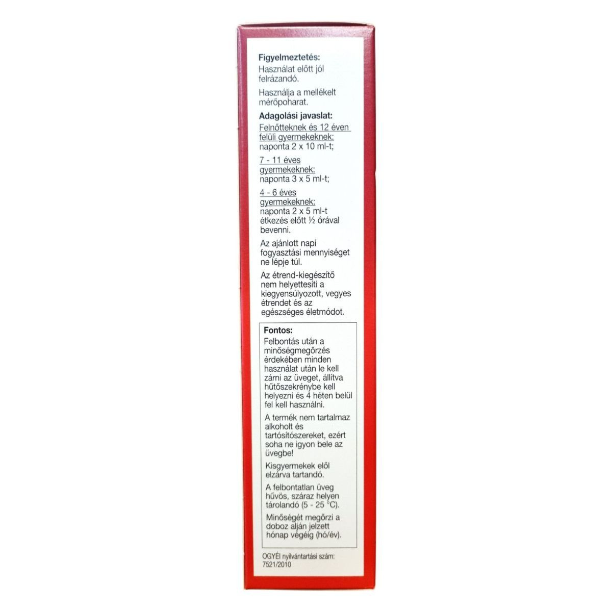 Az ajánlott napi fogyasztási mennyiséget ne lépje túl. Az étrend-kiegészítő nem helyettesíti a kiegyensúlyozott, vegyes étrendet és az egészséges életmódot. Kisgyermekek elől elzárva tartandó. A termék alkoholt és tartósítószert nem tartalmaz, ezért az üvegbe ne igyon bele.