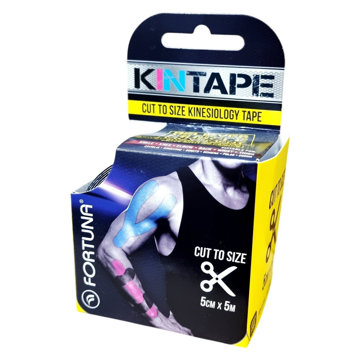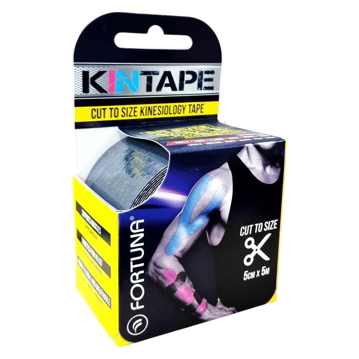 A fekete színű Fortuna Kinesiology Tape modern orvosi és fizioterápiás kezelésekben alkalmazott innovatív fájdalomcsillapító eszköz, amely közvetlenül a bőrrétegekre és izomszövetekre hat, így az izomgyulladás és fájdalom okát kezeli. A tapasz nem korlátozza a mozgást, vízhatlan bevonattal rendelkezik és könnyen felhelyezhető. Egész nap hordható, akár 3 napon keresztül is. A terápia megkezdése előtt ajánlott szakképzett fizioterapeuta véleményét kikérni. A teljes használati útmutató a csomagban található betegtájékoztatóban olvasható.