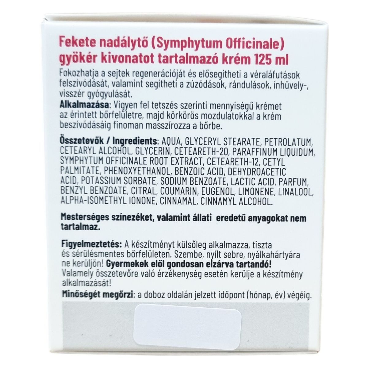 A feketenadálytő krém a bőr egészségének megőrzésére és fájdalomcsillapításra szolgál.