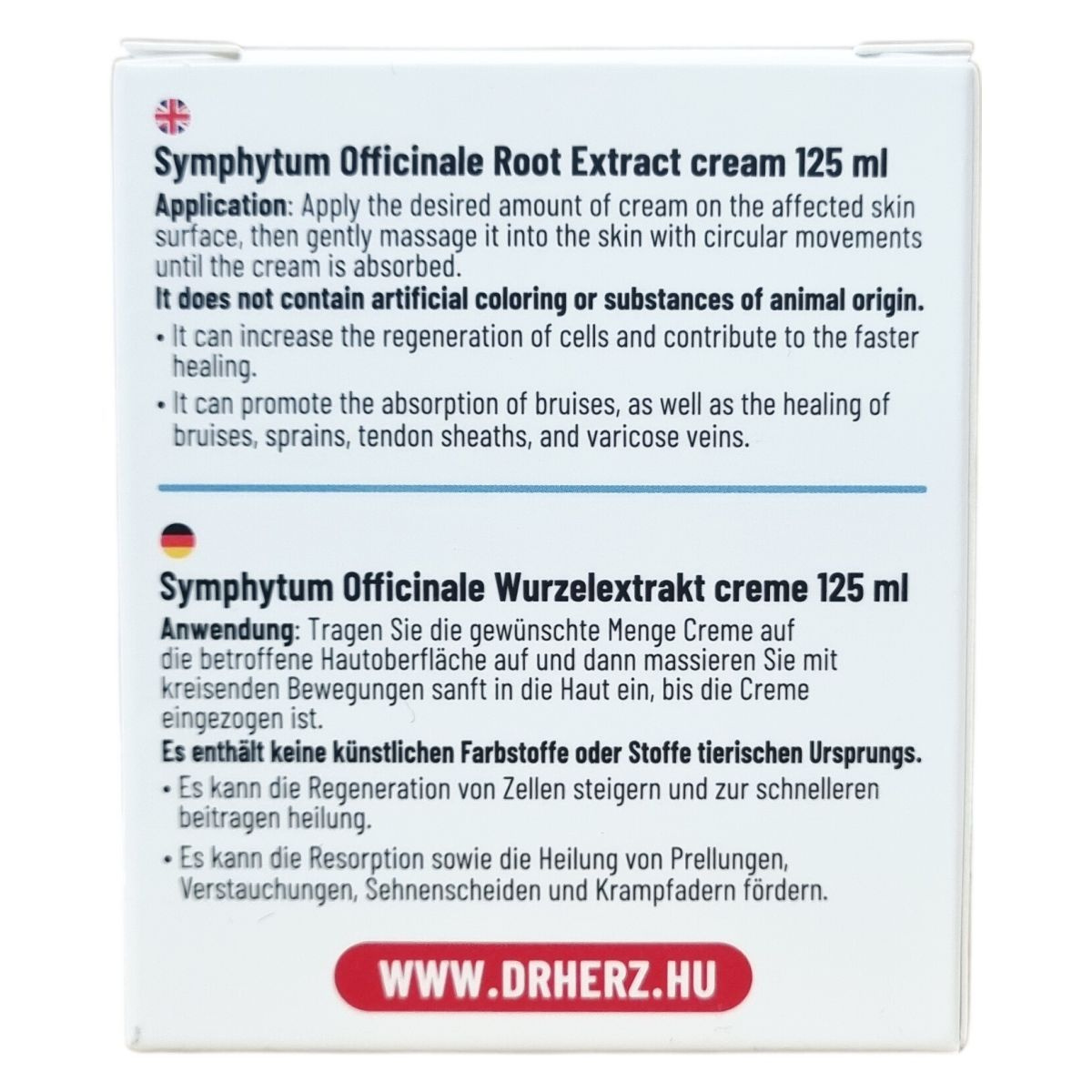 Regeneráló hatóanyagai révén alkalmazható helyi bőrgyulladások kezelésére. Visszérgyulladás esetén a gyulladásos folyamat csökkentésével mérsékli a fájdalmat. Alkalmazása: a krémet véraláfutások, vérömlenyek felszívódásának elősegítésére, csonttörések utáni kezelések kiegészítőjeként ajánljuk bőrápolási céllal. Folyamatos használatát maximum kettő hétig ajánljuk.