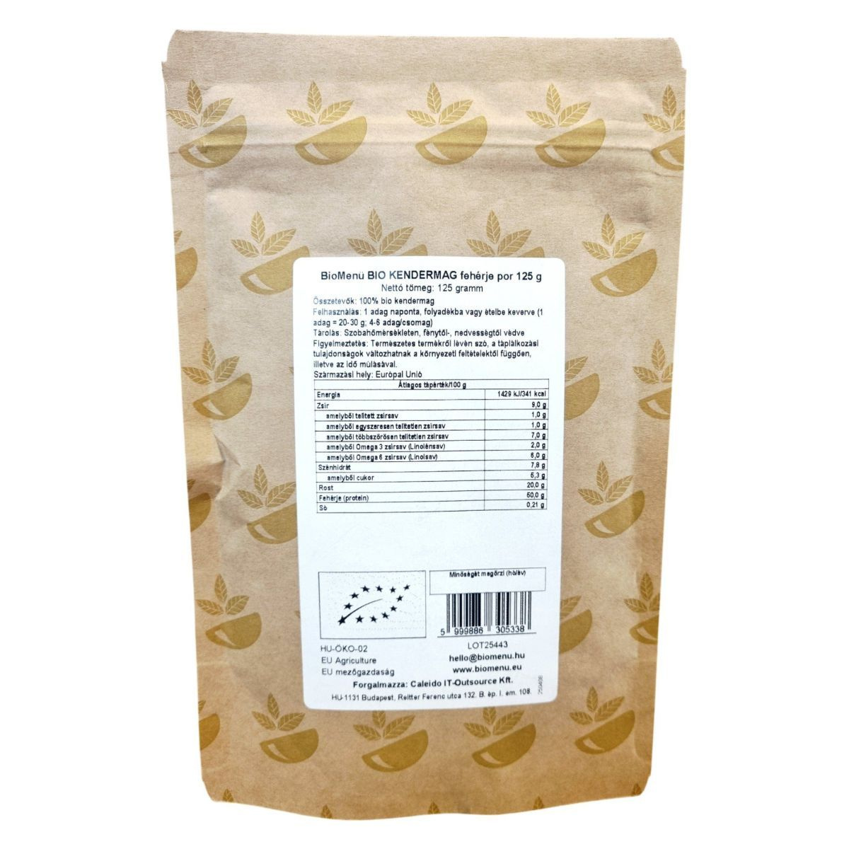 A BioMenü BIO KENDERMAG fehérje por egy kiváló minőségű, 100% bio kendermagból készült termék, amely az Európai Unióból származik. A termék gazdag fehérjében és rostban, valamint tartalmaz Omega 3 és Omega 6 zsírsavakat, amelyek hozzájárulhatnak az egészséges étrend támogatásához. A kendermag fehérje por bio, raw és vegán étrendi irányzatoknak is megfelel. A termék szobahőmérsékleten, fénytől és nedvességtől védve tárolandó. A termék minőségét a HU-ÖKO-02 tanúsítvány garantálja.