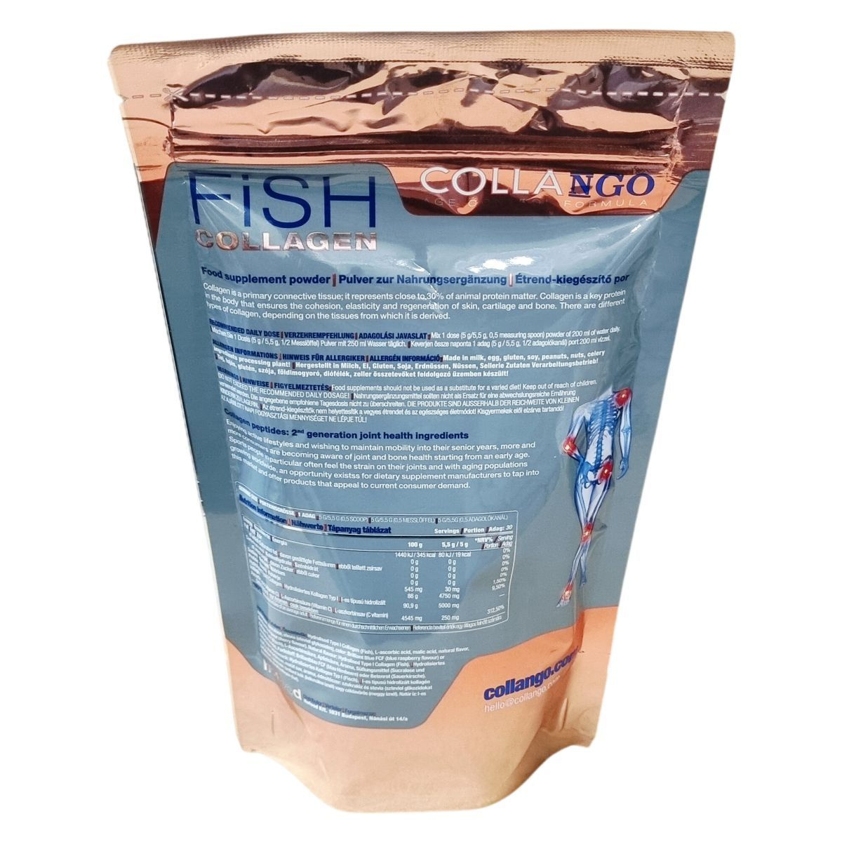 A Collango kollagén termékpalettája hal kollagénnel bővült: I-es típusú hidrolizált Naticol BPMG hal kollagén, 5.000 mg (5 g) kollagén adagonként.