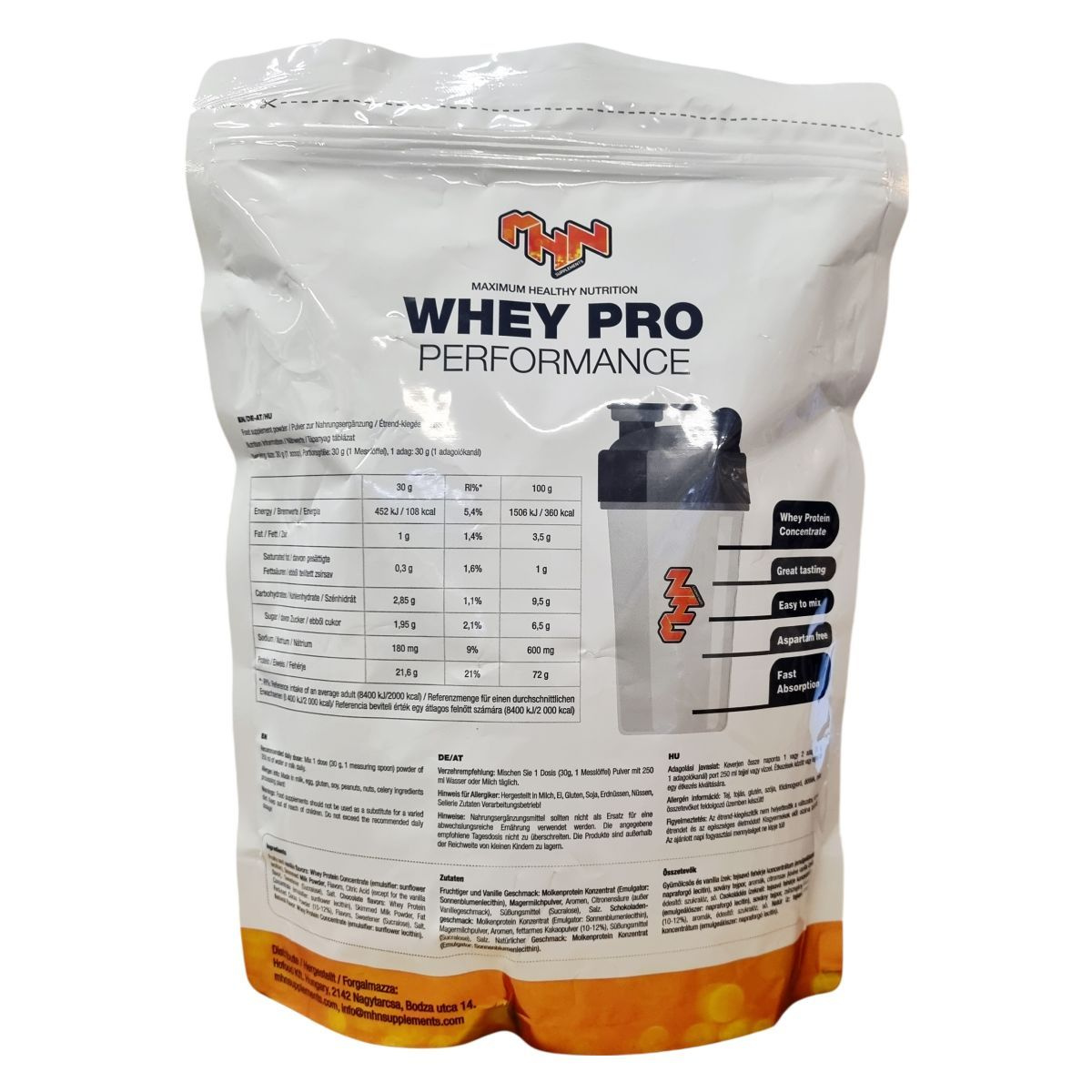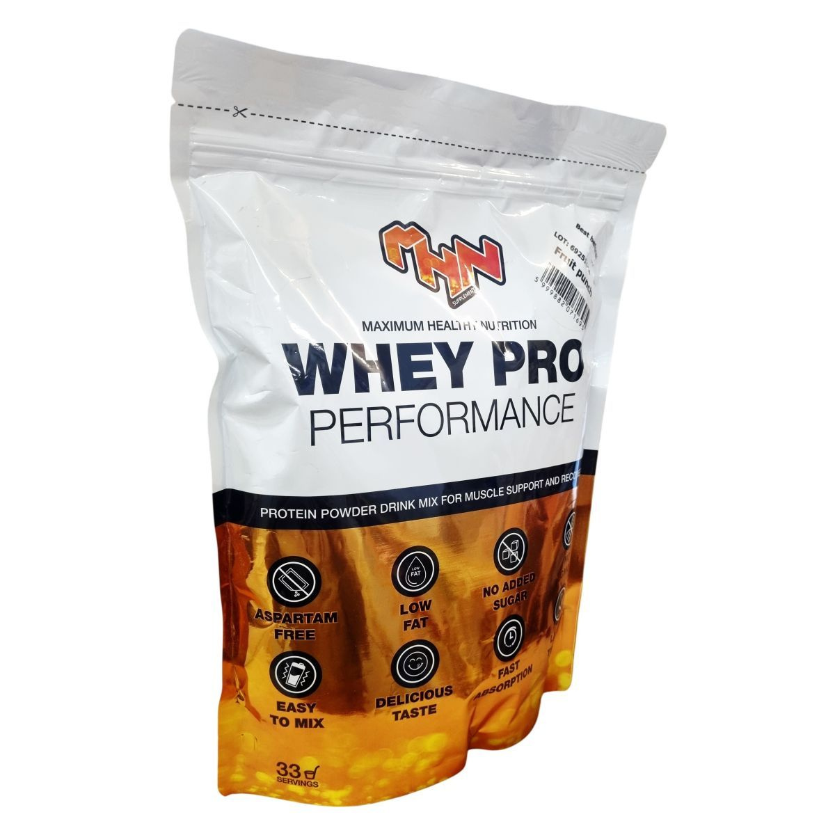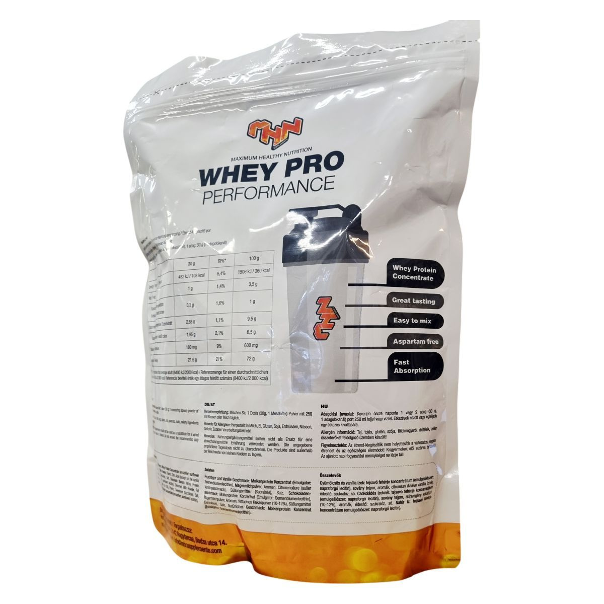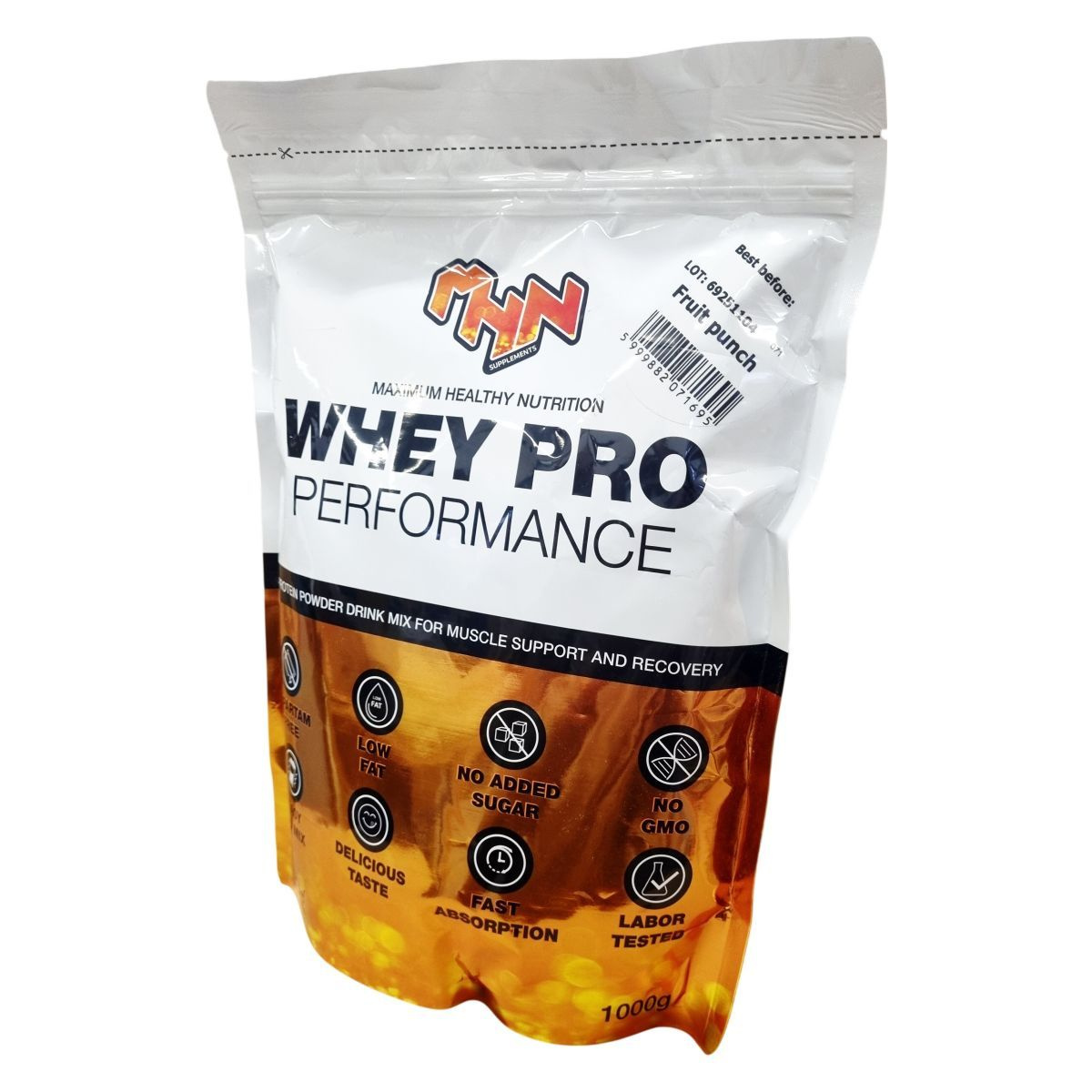 A Maximum Healthy Nutrition WHEY PRO egy alacsony zsírtartalmú, hozzáadott cukrot és génmódosított összetevőket nem tartalmazó fehérjeital por, amelyet kifejezetten izomtámogatásra és regeneráció elősegítésére fejlesztettek ki. Könnyen keverhető és gyorsan felszívódik, illetve aszpartám-mentes. A termék gyümölcsös puncs ízben érhető el, 30 grammos kiszerelésben, amely megfelel egy adagnak. Az összetevők között megtalálható a tejsavó fehérje koncentrátum, amely nagy mennyiségben tartalmaz fehérjét és mérsékelt mennyiségű zsírt és szénhidrátot. A nátriumtartalom szintén mérsékelt. A tápértékadatok a napi referencia beviteli értékek százalékában is meg vannak adva átlagos felnőtt számára. A termék ízvilágát és könnyű használhatóságát dicsérik, így hozzájárulhat a sportolók és aktív életmódot folytatók fehérjebevitelének optimalizálásához.