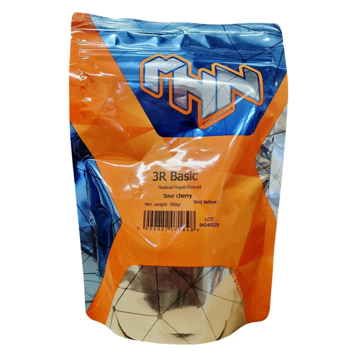 A MNN 3R Basic Radical-Rapid-Reload egy savanykás meggy ízű étrend-kiegészítő, mely egy adagja (10 g) 30 adaggal segítheti az aktív életmódot. Hatóanyagai között BCAA aminosavak (L-Leucin, L-Izoleucin, L-Valin 2:1:1 arányban), L-Glutamin, valamint L-Citrullin DL-Malát szerepelnek, melyek hozzájárulhatnak fizikai teljesítmény fokozásához és izomregenerációhoz. Az édesítőszerként szukralózt, továbbá természetes színezékekként céklaport és briliánszínt alkalmaznak. Az allergén információ szerint az előállítás olyan üzemben történik, amely tej, tojás, szója, glutén, mogyoró, hal és kérgestet is feldolgoz, ezért érzékenyek számára figyelmeztetésként szolgál. A termék nem helyettesíti a vegyes étrendet, és gyermekektől távol kell tartani, továbbá nem ehető szilikagél tasakot tartalmaz a csomagolásban.