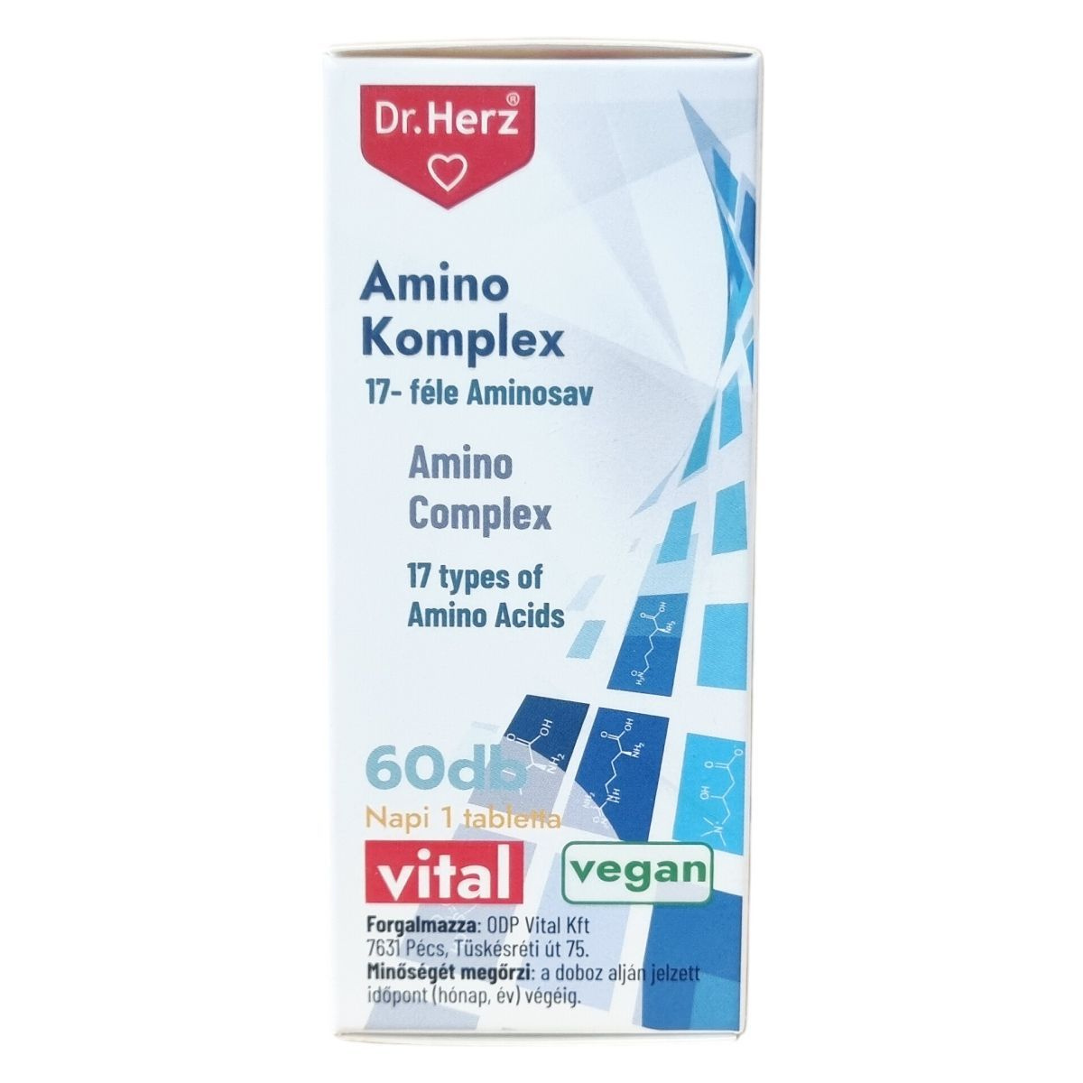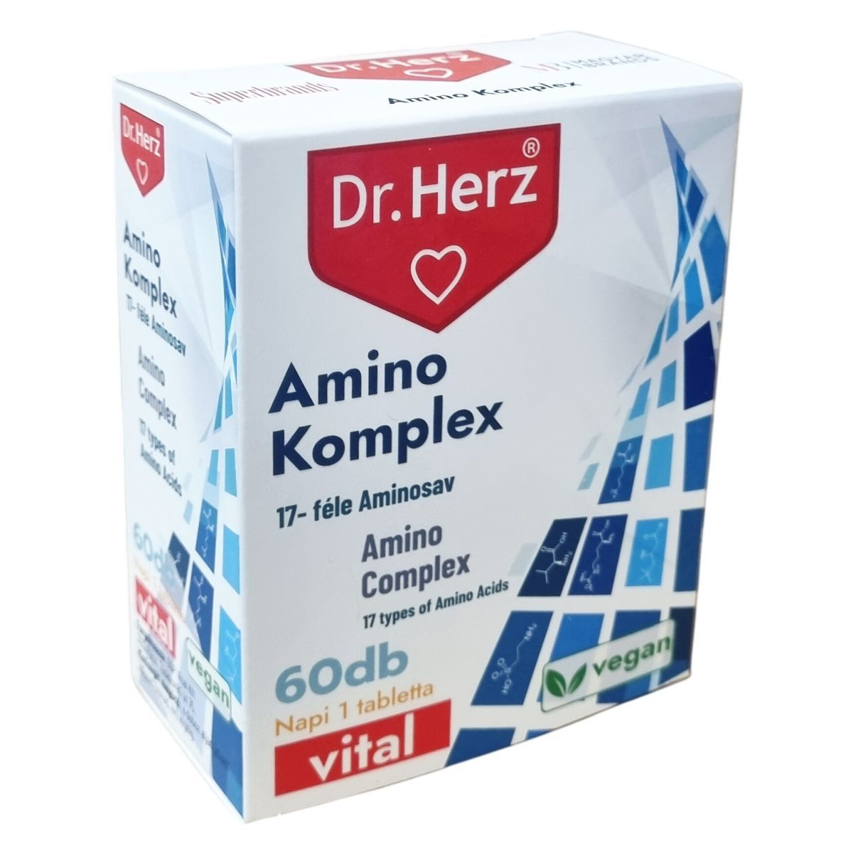 Amino Komplex – 17-féle aminosavat tartalmazó tabletta, 60 darabos kiszerelés. A készítmény 17 különböző aminosavat tartalmaz, amelyek támogathatják az izomnövekedést, a regenerációt és a sejtek megújulását, hozzájárulnak a fehérjeszintézishez, optimalizálják az anyagcserét, valamint megfelelő energiával látják el a szervezetet, segítve a fizikai teljesítmény javítását és az izomfáradtság csökkentését. Az L-lizin, L-leucin, L-fenilalanin és L-arginin hozzájárulhatnak az immunrendszer erősítéséhez és a sebgyógyulás támogatásához. 60 napi adag. Minőségét megőrzi: a doboz alján jelzett időpont (hónap, év) végéig.