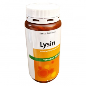 A Sanct Bernhard Lysin étrend-kiegészítő tabletta L-lizin-hidrokloridot tartalmaz, amely egy fontos aminosav lehet a szervezet számára. A termék napi adagja három tablettából áll, ami összesen 1500 mg L-lizint biztosíthat. Az étrend-kiegészítő nem helyettesíti a kiegyensúlyozott étrendet és az egészséges életmódot. A terméket hűvös, száraz helyen, 25 °C alatt kell tárolni, és gyermekektől elzárva tartandó. A termék Németországban készült, és a KRAUTERHAUS Sanct Bernhard gyártja.