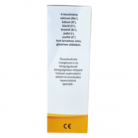 Nátrium (Na+), kálium (K+), klorid (Cl-), bromid (Br-), jodid (I-), szulfid (S2-) ionok vizes, glicerines oldatban.