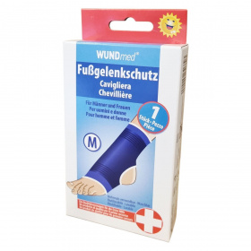 A WUNDmed® elasztikus bokarögzítő kék színű, nyitott sarokrésszel és lábfejjel készül, amely gyűrődés- és lecsúszásmentesen szorosan illeszkedik. Többször felhasználható és mosható, több méretben elérhető, férfiak és nők számára egyaránt alkalmas. Kiváló minőségű termék elsősegélyhez, amely hatékony támaszt nyújt bokasérülések esetén, elősegítve a gyógyulást és csökkentve a további sérülések kockázatát.