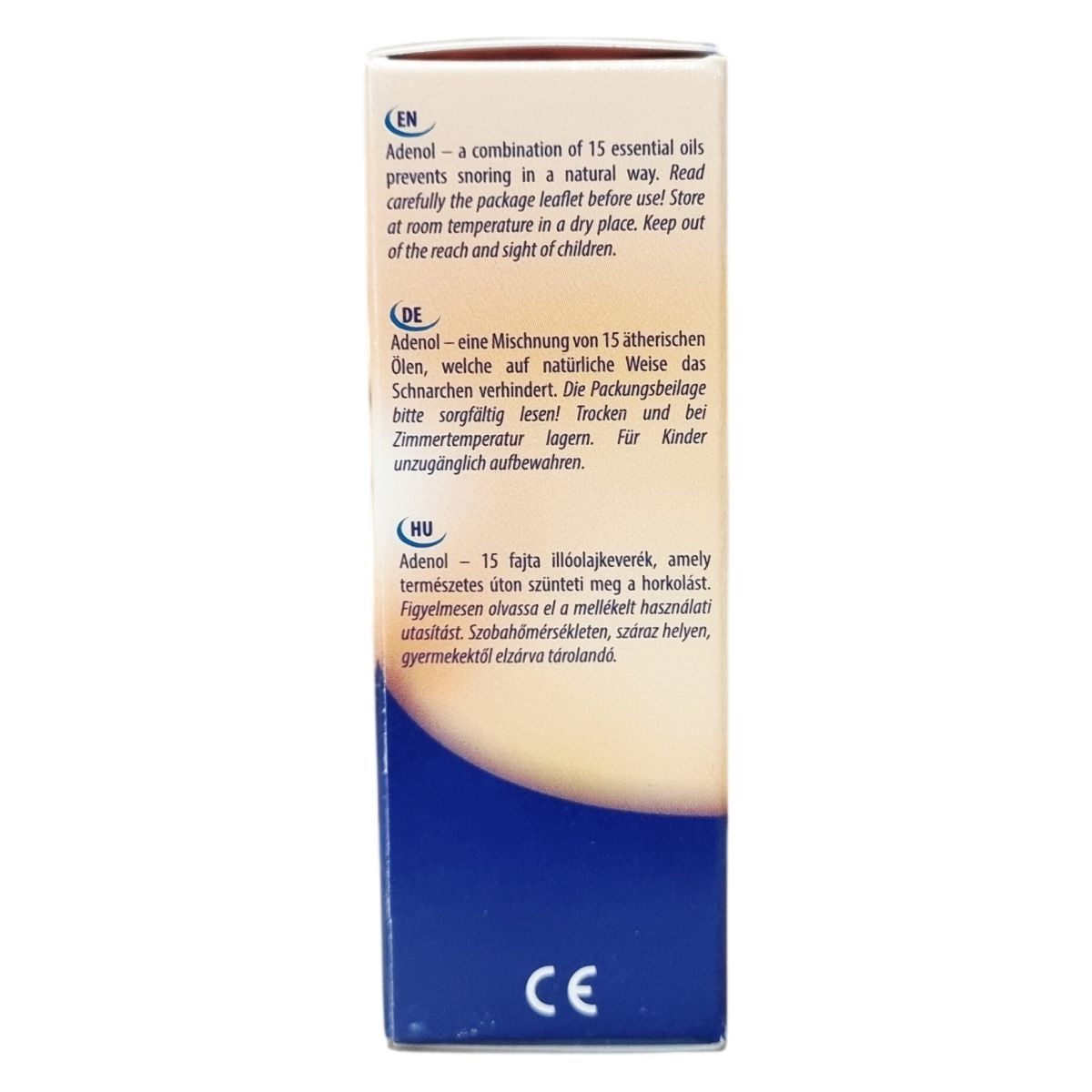 Az Adenol 15-féle illóolaj keverékéből áll, amely természetes úton segíti a horkolás megszüntetését. A termék használata előtt javasolt elolvasni a csomagoláson található részletes tájékoztatót. A készítményt száraz, hűvös és gyermekektől elzárt helyen kell tárolni, optimális szobahőmérsékleten. Az Adenol Európában készült, és több nyelven elérhető használati útmutatóval rendelkezik, mely biztosítja a helyes alkalmazást.