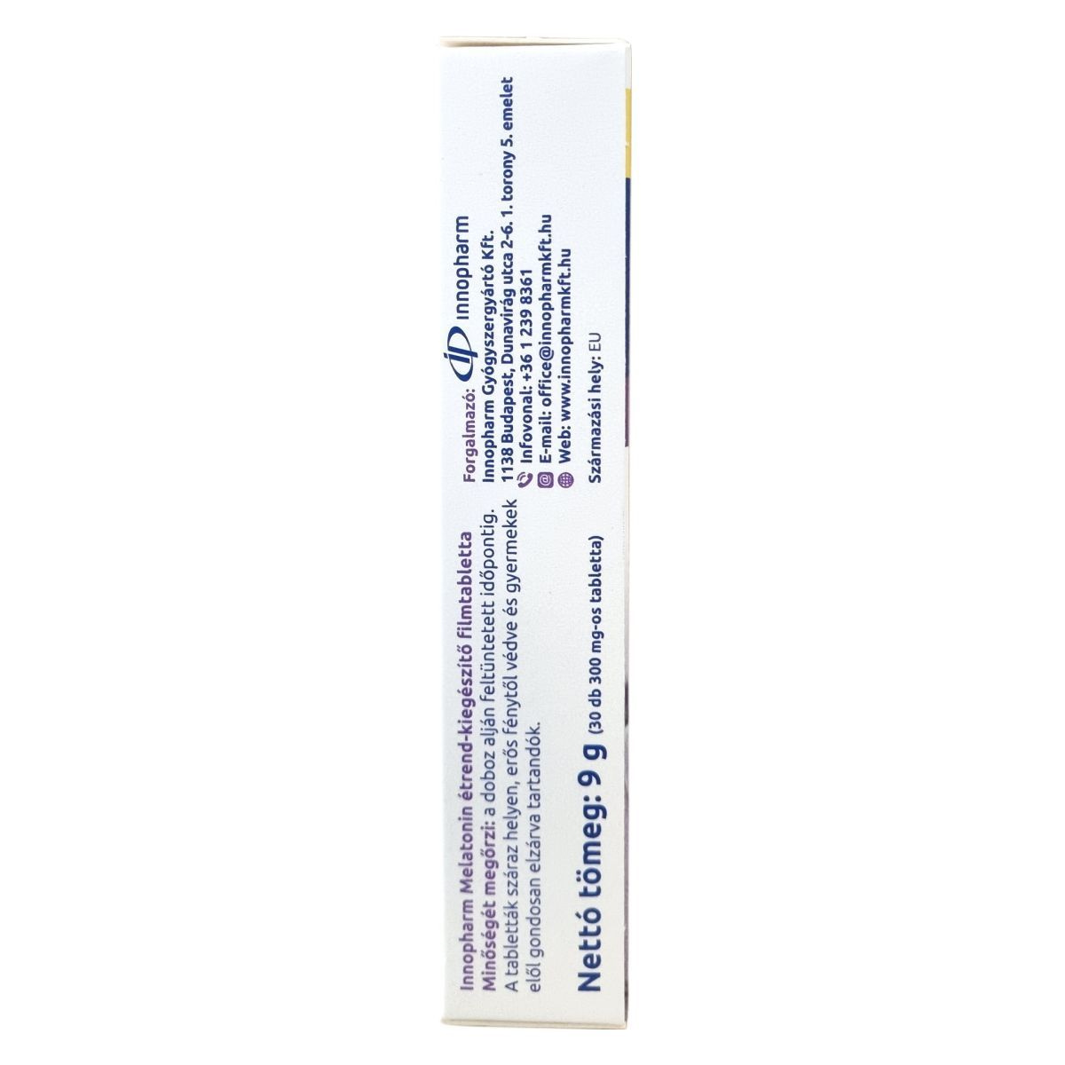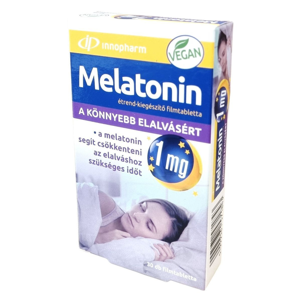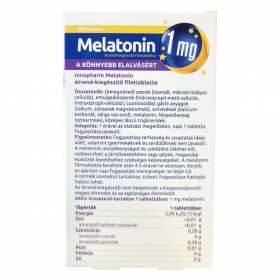 Az InnoPharm melatonin étrend-kiegészítő filmtabletta 1 mg melatonint tartalmazó készítmény.
