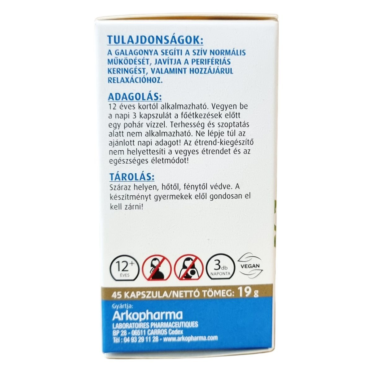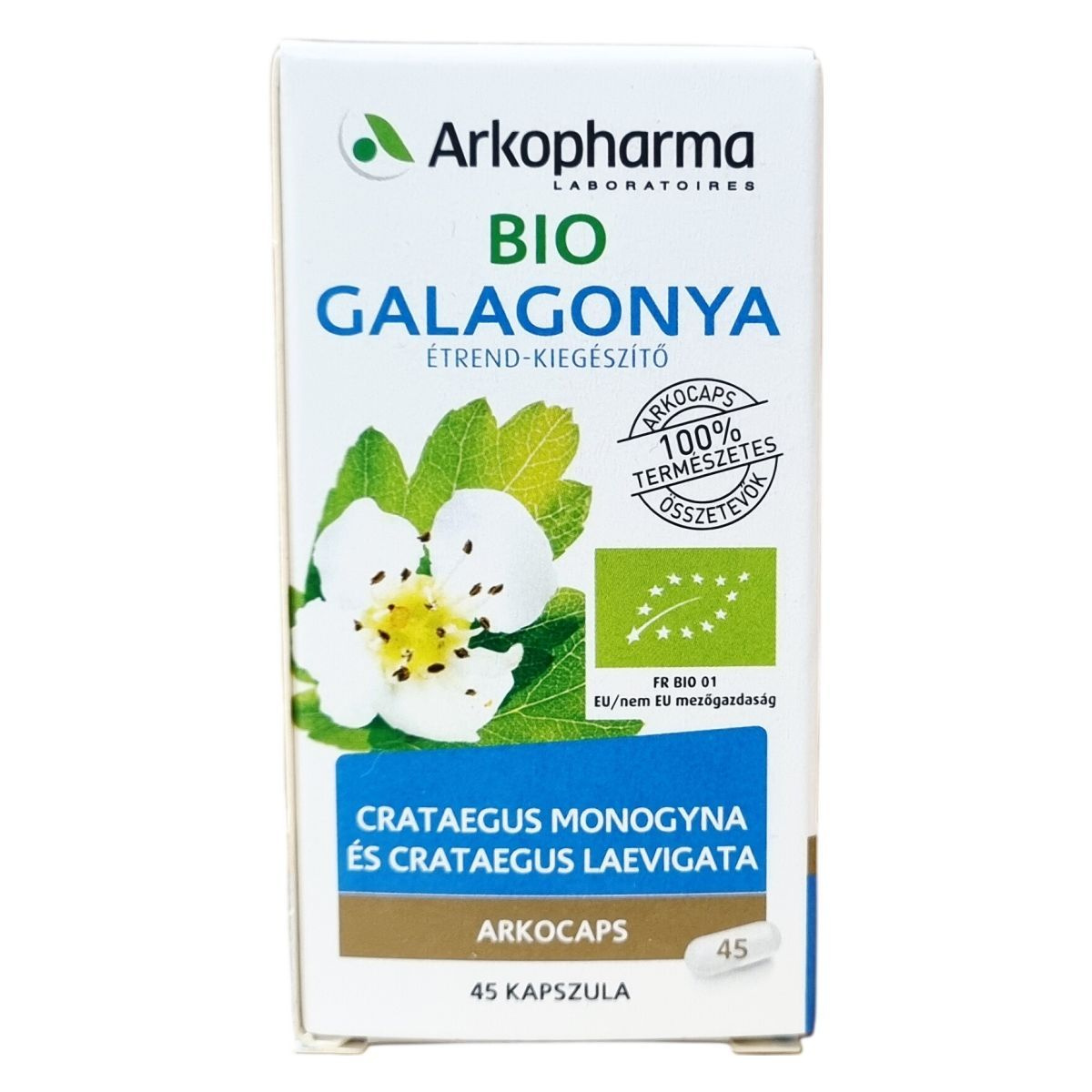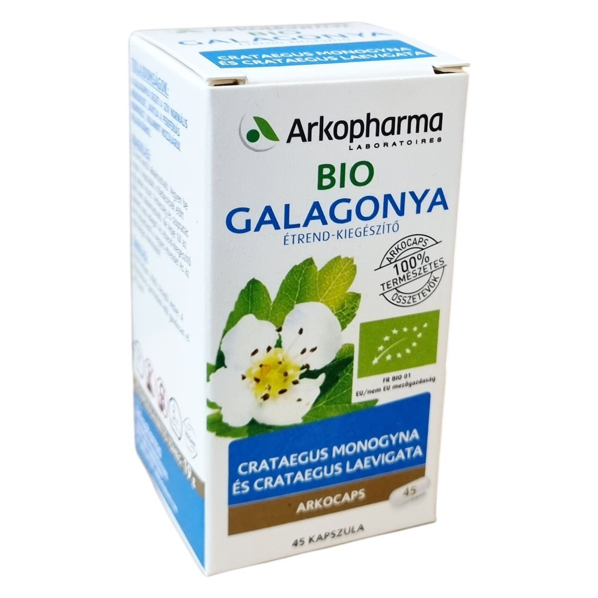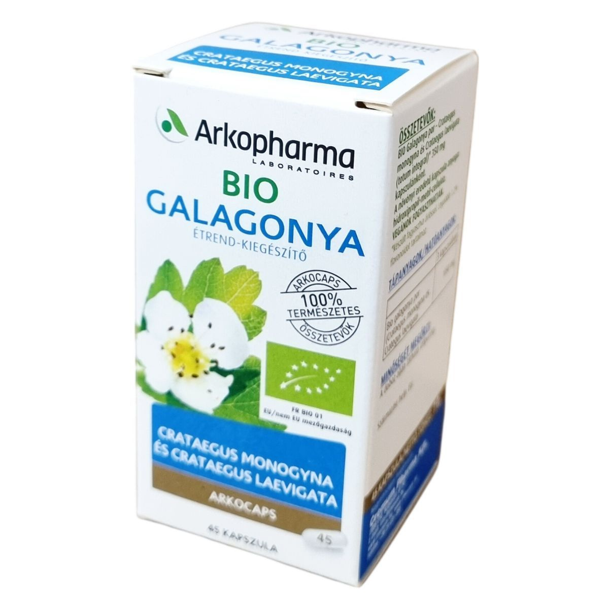 bio galagonya por (Crataegus monogyna és Crataegus laevigata), kapszula anyaga: hidroxipropil-metil-cellulóz
