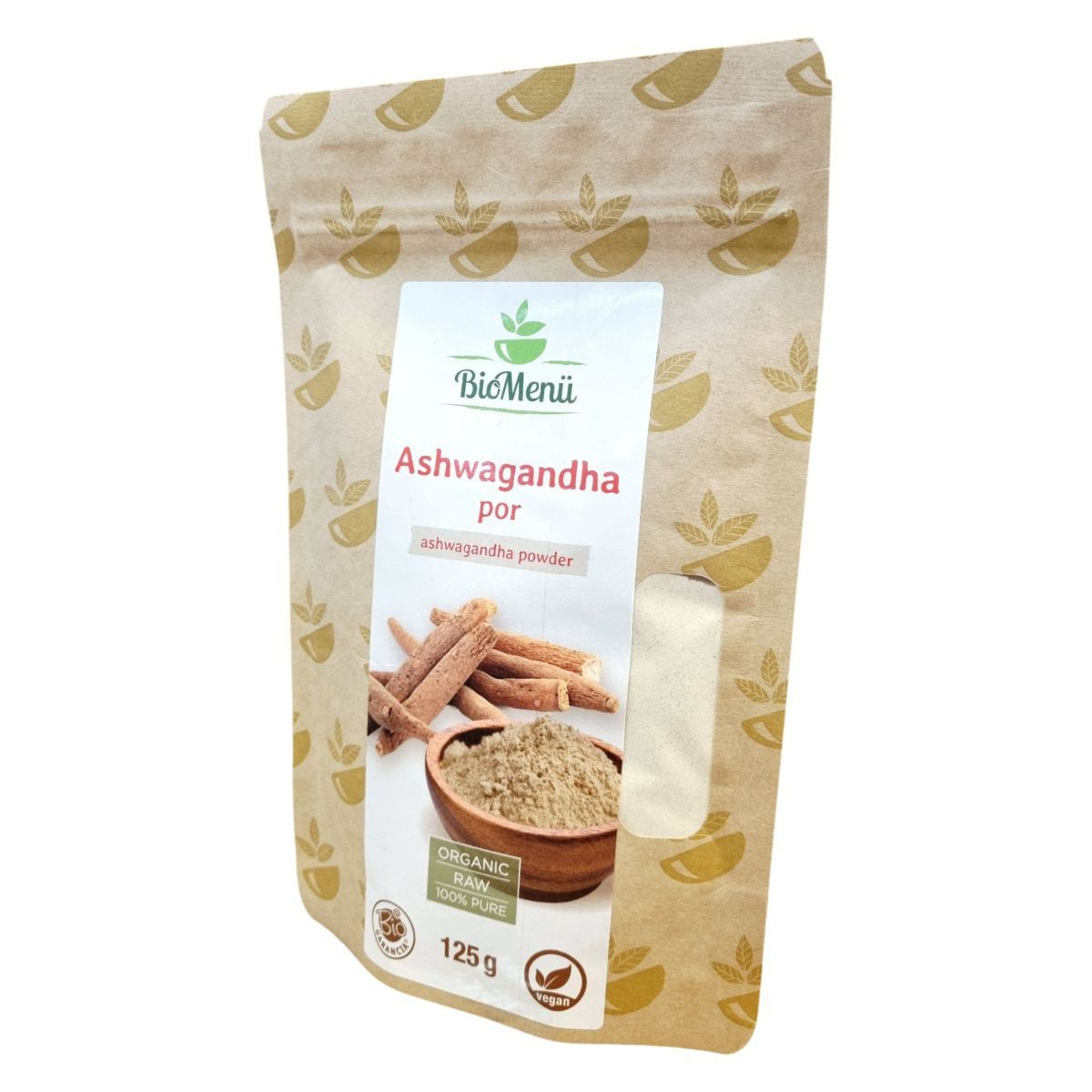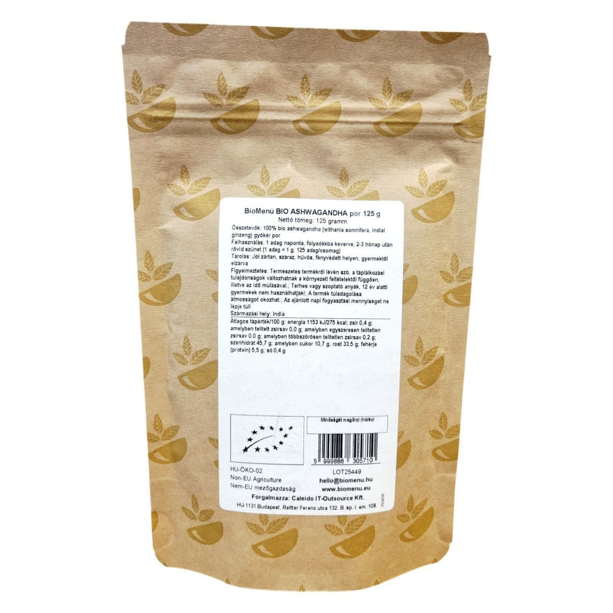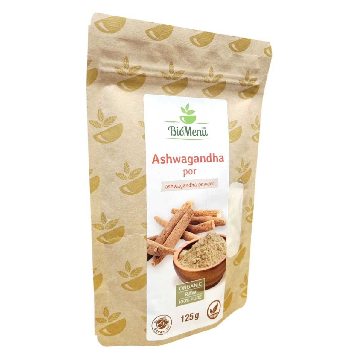 A BioMenü Ashwagandha por 100% bio ashwagandha gyökérből készül, amely támogathatja a szervezet stresszkezelő képességét és hozzájárulhat az általános jóléthez. Az organikus, nyers és vegán termék 125 adagot tartalmaz.