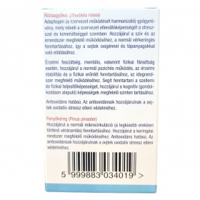 Rózsagyökér és fenyőkéreg kivonatokból álló étrend-kiegészítő tabletta, amely adaptogén és antioxidáns hatóanyagokat tartalmazhat, és segítheti a szervezet stresszhez való alkalmazkodását.