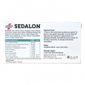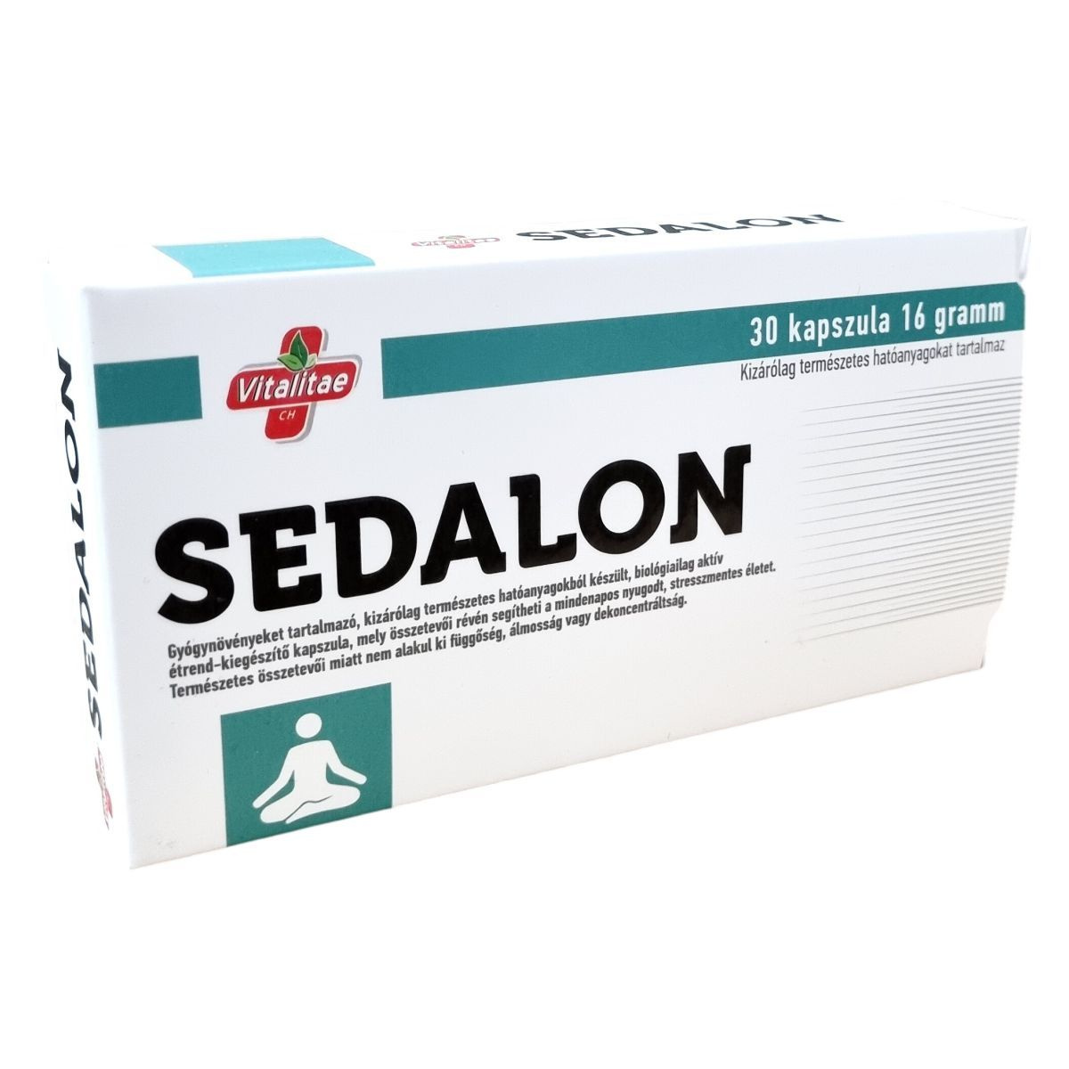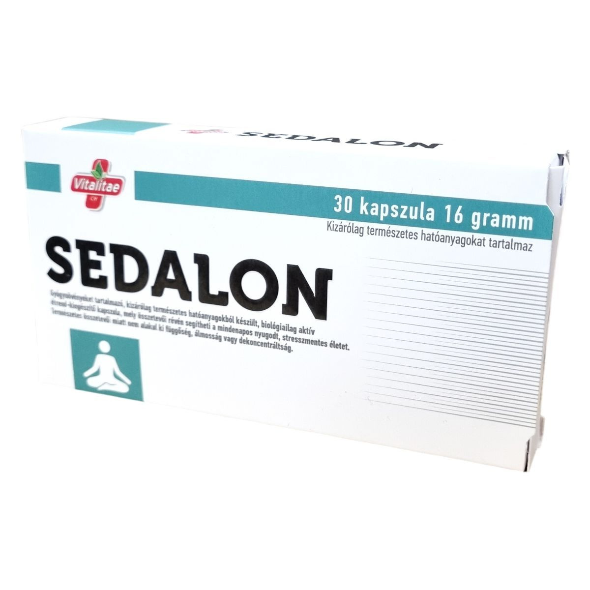 A Vitalitae SEDALON egy biológiailag aktív étrend-kiegészítő kapszula, kizárólag természetes hatóanyagokból, gyógynövények és vitaminok felhasználásával készült. Összetevői között található vörös ginzeng, rózsagyökér kivonat, glutaminsav, magnézium-citrát, theanin, kolin, niacin, B1 vitamin és folsav, amelyek együttesen támogathatják a szervezet stresszel szembeni ellenálló képességét és a koncentráció fenntartását. A készítmény nem okoz függőséget, álmosságot vagy dekoncentráltságot, így naponta kényelmesen alkalmazható nyugodt életvitel megőrzésére. A termék 30 kapszulás kiszerelésben, összesen 16 gramm tömegben érhető el.