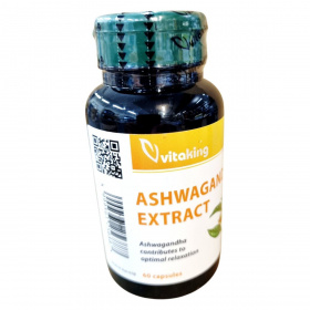 Az Ashwagandha Extract étrend-kiegészítő 60 kapszulás kiszerelésben kapható. Az Ashwagandha hozzájárulhat a fizikai és szellemi képességek megőrzéséhez gyengeség, kimerültség és koncentrációs nehézségek esetén. Támogathatja a mentális és fizikai jólétet, hozzájárulhat a szorongás és a stressz csökkentéséhez, valamint az érzelmi egyensúlyhoz és a pihentető alváshoz. A termék összetevői között található az Ashwagandha 5%-os kivonata, hidroxi-propil-metilcellulóz kapszulahéj, maltodextrin, valamint csomósodást gátló anyagként zsírsavak magnézium sói. A termék használata nem ajánlott terheseknek, szoptató anyáknak és 12 éves kor alatti gyermekeknek. Fontos, hogy a terméket gyermekek elől elzárva, száraz, hűvös helyen tároljuk.