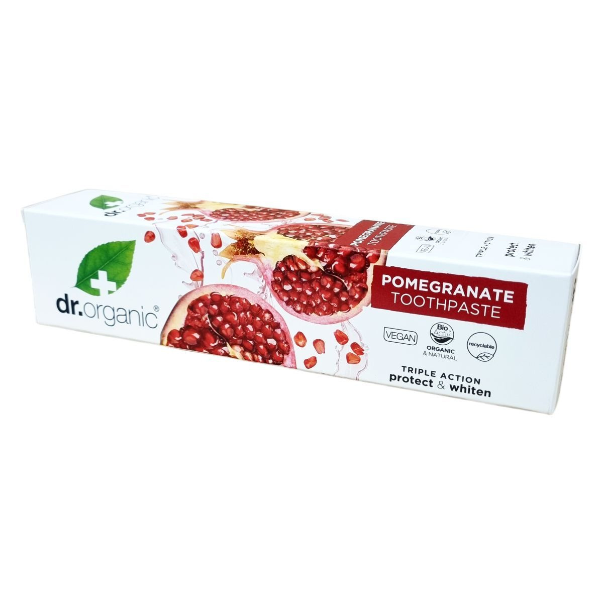A Dr. Organic bio gránátalma tartalmú fogkrémje hármas hatással rendelkezik: természetesen fehéríti a fogakat, véd a fogszuvasodás ellen és frissíti a leheletet. Nátrium-monofluorofoszfátot tartalmaz, amely 1000 ppm fluoridot biztosít. Az összetevők organikusak és vegánok, továbbá a termék újrahasznosítható csomagolásban kerül forgalomba. A fogkrém alkalmazása során különösen fontos a gyermekek fogmosásának felügyelete és a csökkentett mennyiség használata 6 éves kor alatt a fluoridbevitel miatt. Használatával természetes és hatékony szájápolást biztosíthatunk, fenntartva a szájhigiéniát és a fogak egészségét.