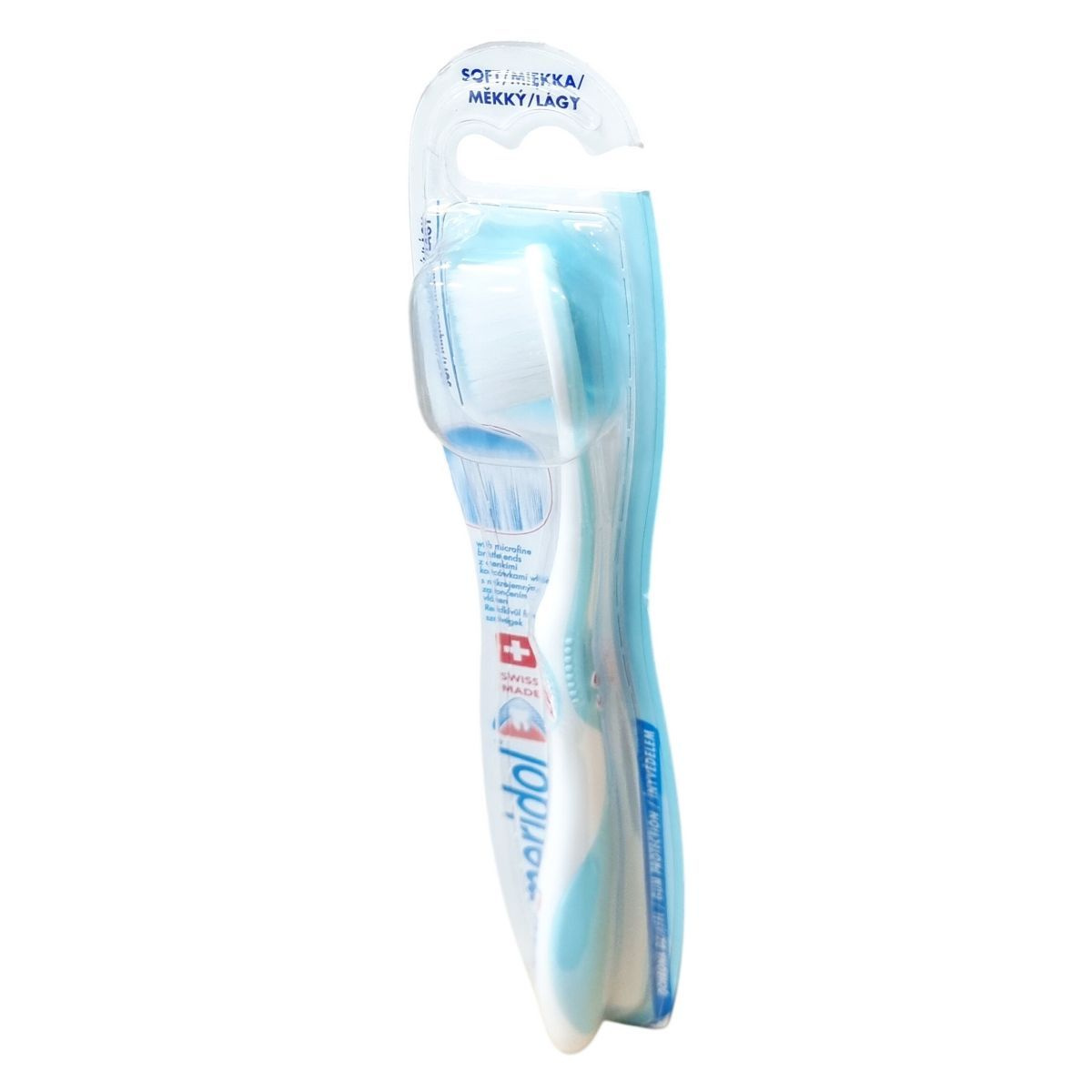 A meridol Soft fogkefe alkalmas az érzékeny fogíny ápolására, mikrofinom szálvégei alaposan és kíméletesen tisztítják a fogakat, hozzájárulva a fogínygyulladás megelőzéséhez. A fej finombevonattal rendelkezik, a nyél ergonómikus kialakítású a könnyű használat érdekében. A terméket szakemberekkel együttműködve fejlesztették ki és klinikai tesztek igazolják hatékonyságát. Svájcban készült minőségi termék, amelyhez a meridol kutatócsapata biztosítja a szakmai hátteret. A termék csomagolásán feltüntetett azonosító szám: 3284CH30K, valamint vonalkód: 7610108043149. A meridol termékcsalád arcot is ad a fogínyvédelmi megoldásoknak.