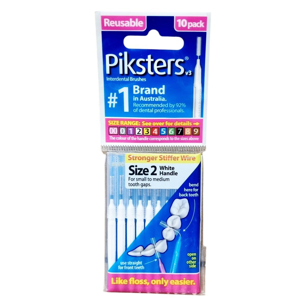 A Piksters fogköztisztító kefe erős és merev drótokkal rendelkezik, amelyek megakadályozzák az elgörbülést, és a fogkefe fogantyúja színes, a különböző méretek könnyű azonosítása érdekében. A kefe méretei a 00-tól 9-ig terjednek, és a fogközök méretéhez igazíthatók különböző vastagságú és kialakítású kefékkel. A kefe használata megkönnyíti a fogak közötti tisztítást, hasonlóan a fogselyemhez, azonban egyszerűbb kezelhetőséget biztosít. A fogköztisztító kefe különösen ajánlott azok számára, akiknél a hagyományos fogselyem nem elég hatékony. A terméket Ausztráliában tervezték, Kínában gyártják.