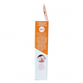 Az elmex interdental kefék többféle méretben (0,4 mm, 0,5 mm, 0,6 mm és 0,7 mm) kaphatók, így ideálisak kis és közepes méretű fogközök tisztítására. A készlet egy mix csomagot tartalmaz, nyolc kefét és egy higiénikus tároláshoz használható utazó fedőt. A kefék spirál alakú, puha sörtéi hatékonyan távolítják el a lepedéket, miközben a flexibilis, bevont, lekerekített véggel ellátott drót könnyű és kíméletes bevezetést biztosít a fogközökbe. Csúszásgátló markolata megkönnyíti a kezelést. Különösen ajánlott fogszabályzó, híd vagy implantátum viselők számára, az egyszerű és hatékony interdentalis tisztítás érdekében. A termék kartoncsomagolása több mint 70%-ban újrahasznosított anyagból készül, ezzel is támogatva a fenntarthatóságot és a víztakarékosságot.