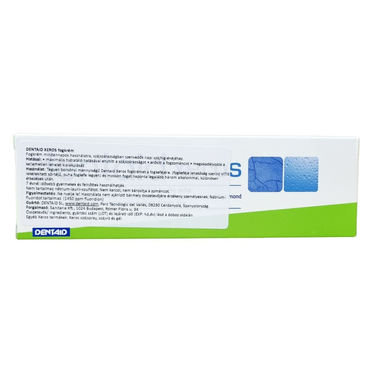 A Dentaid Xeros fogkrém különösen szájszárazságban szenvedők napi szájhigiénéjéhez készült. Hidratáló képessége kiváló, enyhíti a szájszárazság kellemetlen tüneteit, miközben erősíti a fogzománcot és megakadályozza a rossz lehelet kialakulását. A termék nem tartalmaz nátrium-lauril-szulfátot, ezáltal kíméletes a fogakhoz és a száj nyálkahártyájához. Széles körben elérhető Európában, valamint több más országban is forgalmazzák szakértői boltokban és gyógyszertárakban. A termék 75 ml kiszerelésű tubusban érhető el. A család további tagjai között szájspray, szájvíz és gél is megtalálható a Xeros termékcsaládban.