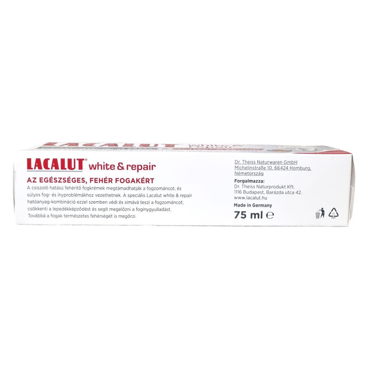 A Lacalut white & repair fogkrém védi és simává teszi a fogzománcot, csökkenti a lepedékképződést, megelőzi a fogínyproblémákat, és segít megőrizni a fogak természetes fehérségét.