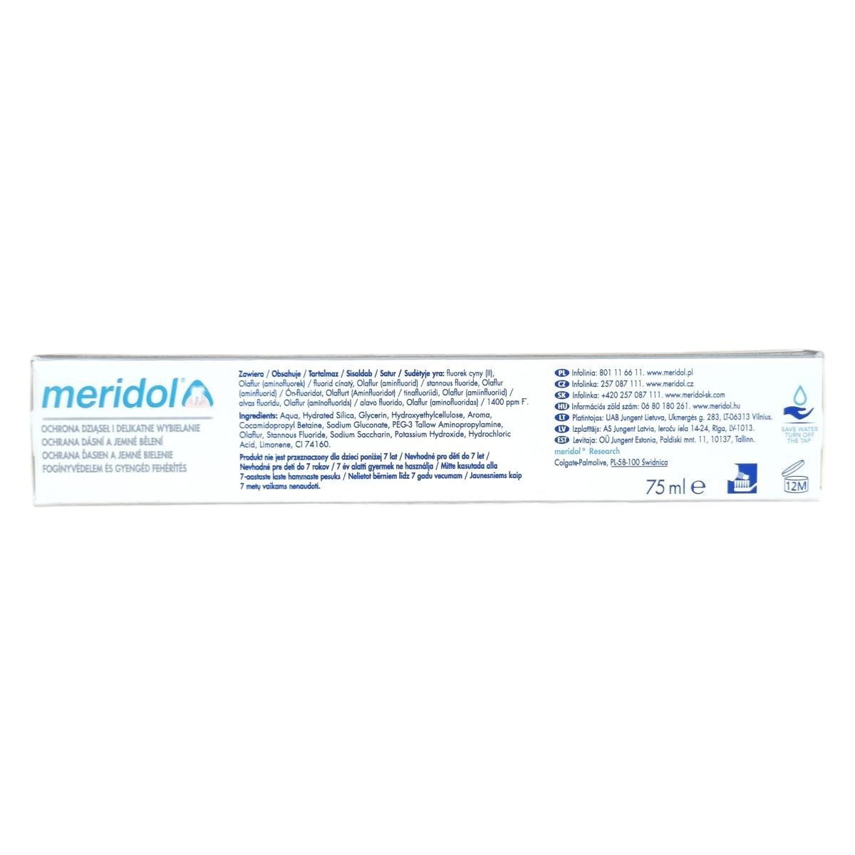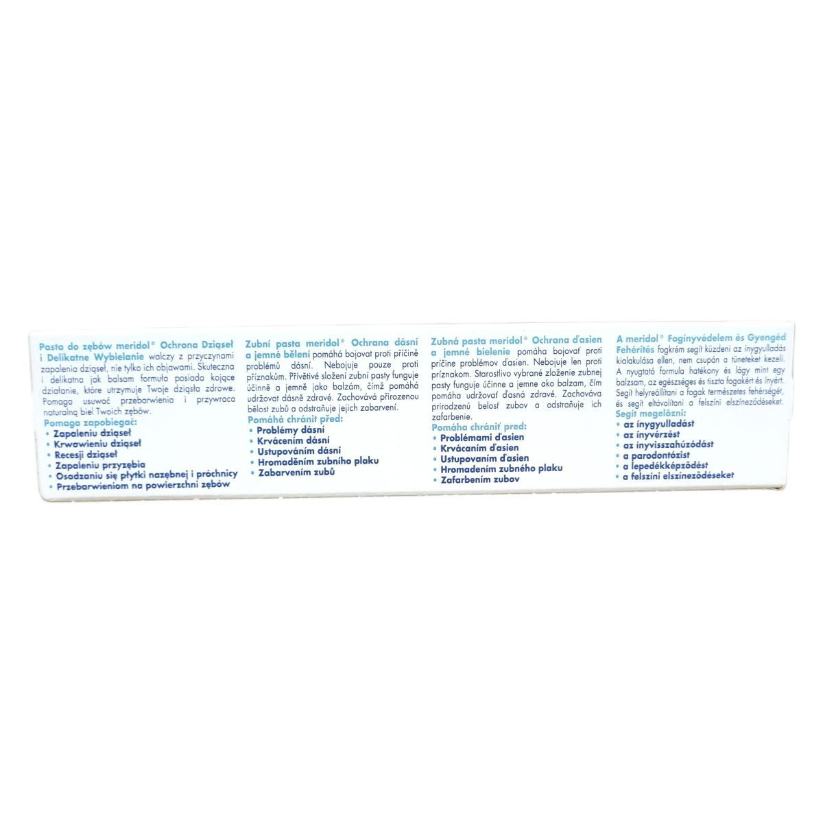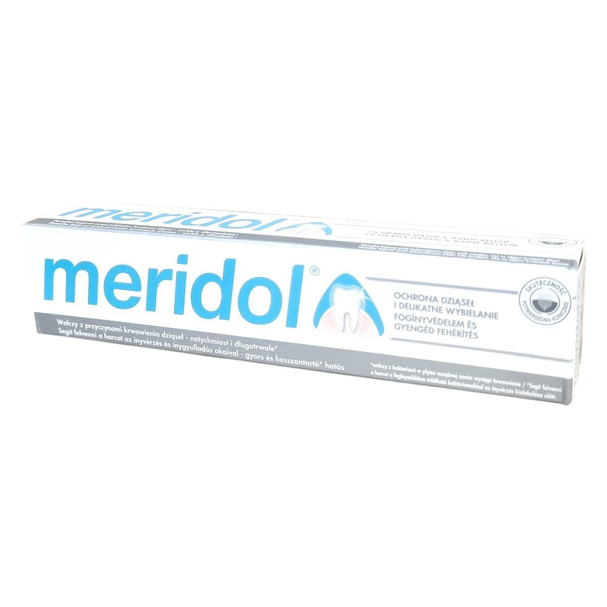 A meridol® Fogínvéd elem és Gyengéd Fehérítés fogkrém a kiváltó okokkal veszi fel a harcot az ínyvérzés és ínygyulladás ellen, nem csupán tüneti kezelést nyújt. Kellemes, balzsamszerű formula nyugtató hatású, mely megőrzi az íny egészségét, segít eltávolítani a fogak felszínén lévő elszíneződéseket, illetve visszaállítja a természetes fehérséget. A fogkrém támogatja az ínyvisszahúzódás és a parodontózis megelőzését, valamint akadályozza a fogkő és a lepedék képződését. A termék 1400 ppm fluoridot tartalmaz, és nem alkalmas 7 év alatti gyermekek részére.