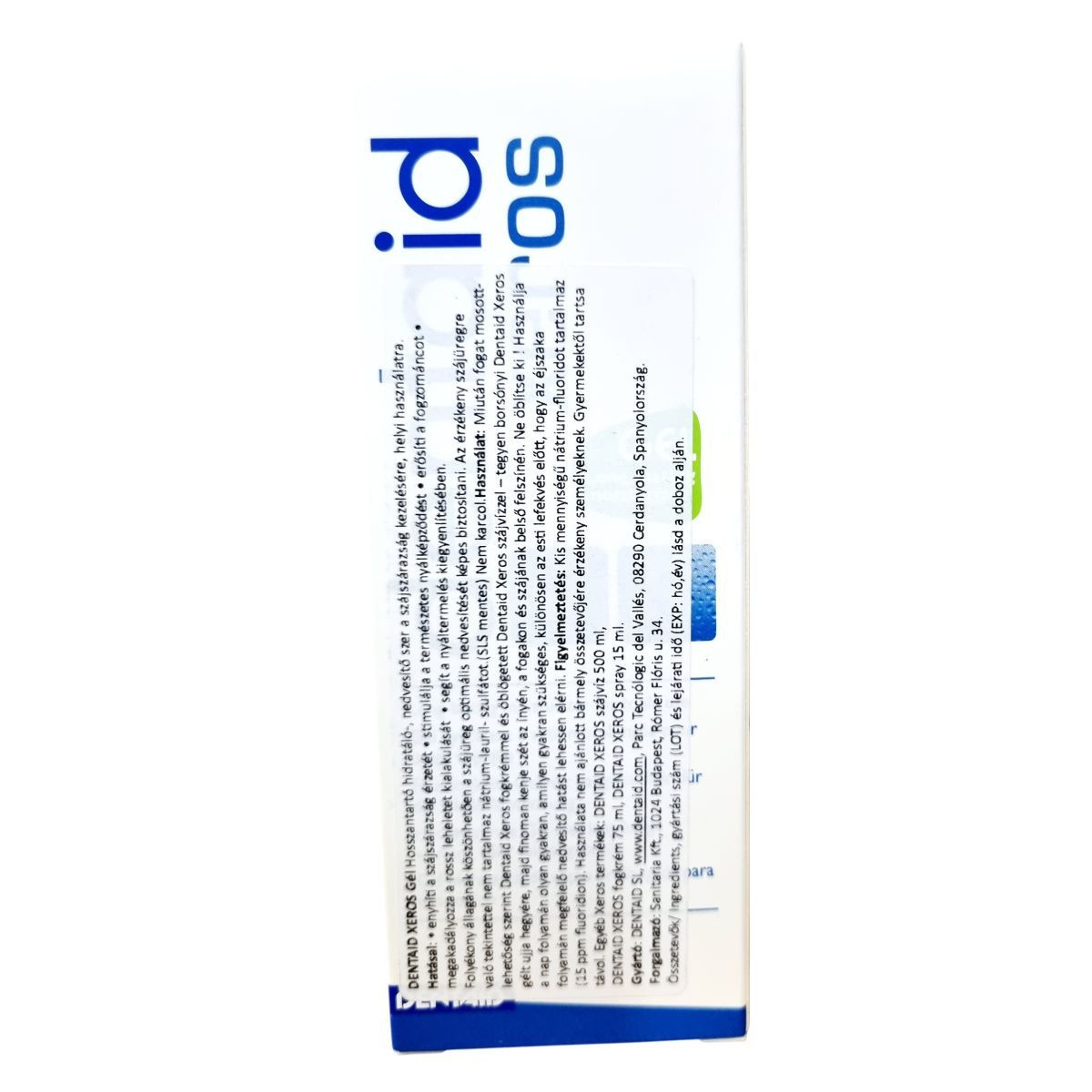 A DENTAID Xeros gél egy hosszantartó hidratáló, amelyet a szájszárazság enyhítésére fejlesztettek ki. A termék serkenti a természetes nyálképződést, erősíti a fogzománcot, és megelőzi a rossz lehelet kialakulását. Folyékony állagának köszönhetően optimális nedvesítést biztosít, és érzékeny szájnyálkahártya esetén is alkalmazható. A termék nátrium-fluoridot tartalmaz, amely segít a fogzománc erősítésében, és mentes a Sodium lauryl sulfate-tól, valamint nem abrazív. A gyártó DENTAID SL, Spanyolországban található.