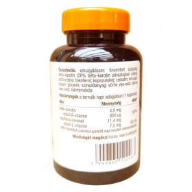 A Caleido Béta-karotin kapszula béta-karotint és tokoferolt tartalmaz, amelyek hozzájárulhatnak a szervezet antioxidáns védelméhez. A termék napi adagja 100%-ban fedezheti a felnőttek számára ajánlott béta-karotin bevitelt.