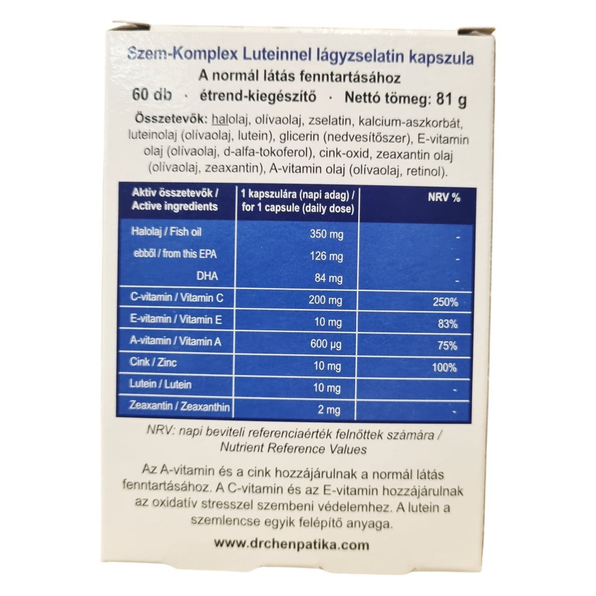 Dr. Chen Szem-komplex luteinnel kapszula 60db leírása