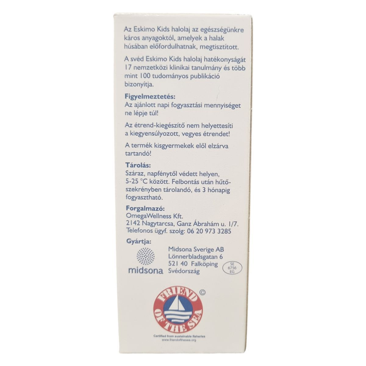 Az EskimoKids halolaj megtisztított formában készül, eltávolítva azokat az egészségre káros anyagokat, amelyek a halak húsában előfordulhatnak. Hatékonyságát 17 nemzetközi klinikai tanulmány és több mint 100 tudományos publikáció támasztja alá. Az omega-3 zsírsavak, mint az EPA és a DHA, valamint az esszenciális zsírsavak támogatják a gyermekek megfelelő növekedését és fejlődését, továbbá D-vitamin-tartalmával hozzájárulhat a gyermekek csontjainak egészséges növekedéséhez. Az omega-3 zsírsavak olyan sejtek alkotóelemei, amelyeket a szervezet nem képes előállítani, ezért fontos külső pótlásuk. Az ajánlott napi bevitellel a termék az E-vitamin szükséglet jelentős részét, illetve a D-vitamin teljes ajánlott napi mennyiségét biztosíthatja. A készítmény tutti-frutti ízű, speciálisan gyermekek számára fejlesztett formula.